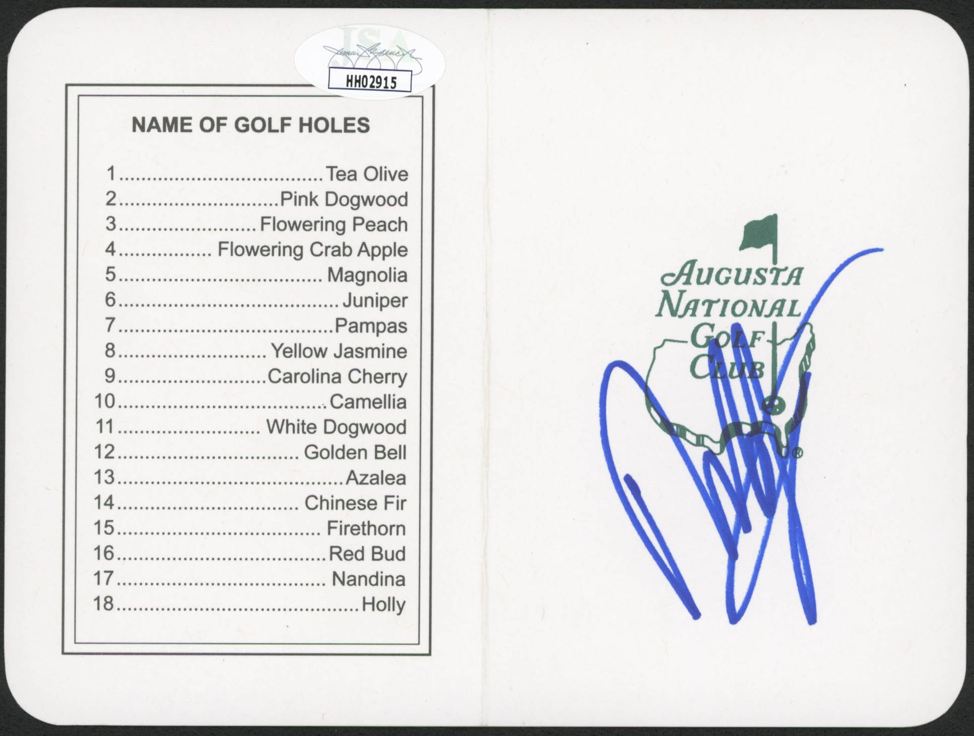 Francesco Molinari Signed Augusta National Golf Club Score Card (JSA COA)