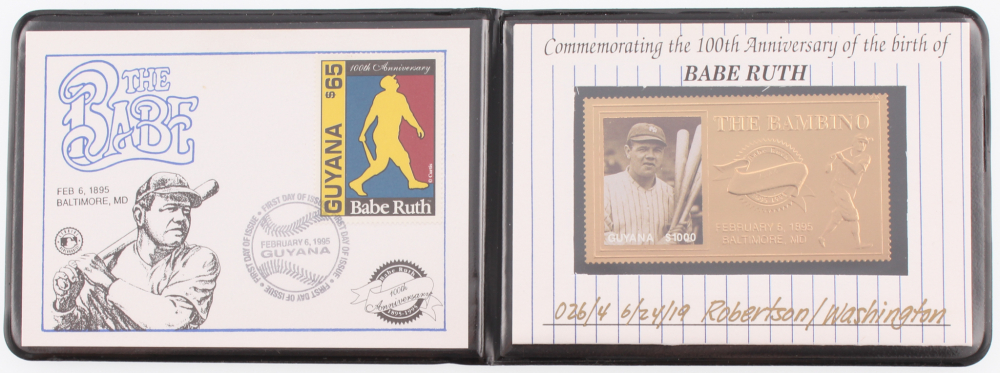 Babe Ruth Commemorative "100th Anniversary" 23 Karat Gold Stamp & FDC