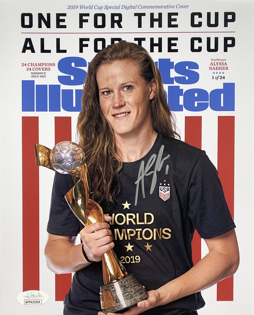 Photo measures 8" x 10" in size and has been hand-signed in silver paint pen by Alyssa Naeher.