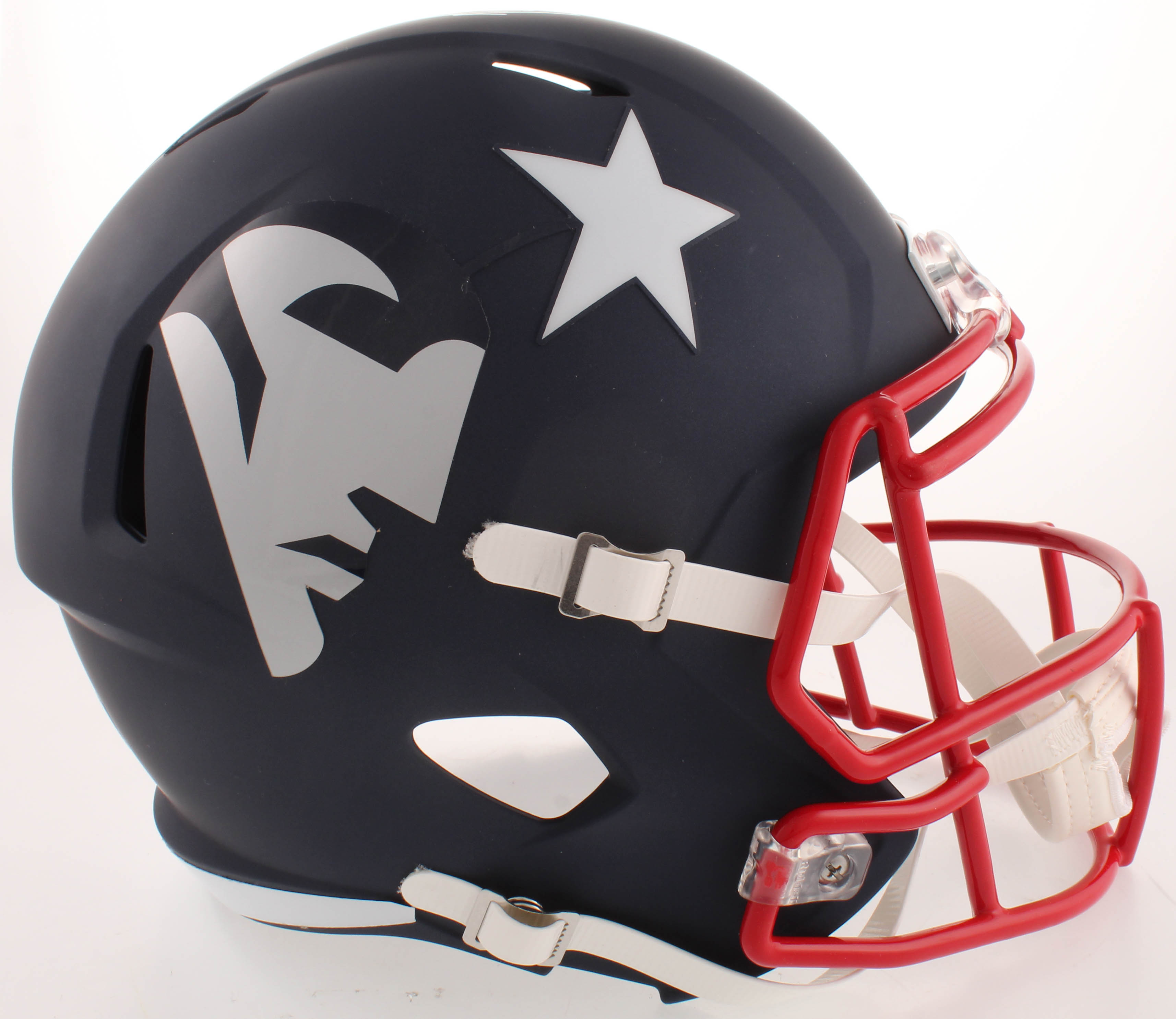 Riddell New England Patriots full-size AMP Alternate replica speed helmet. Hand-signed in white paint pen by Rob Gronkowski.