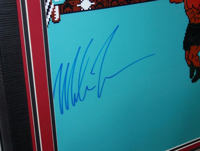 Custom frame measures 21" x 25" in size and features a 16" x 20" photo that has been hand-signed in blue felt tip pen by Mike Tyson. The piece also includes an original Nintendo controller. The autograph includes an official James Spence Authentication (JSA) hologram and matching COA for authenticity purposes. The signing of this item was witnessed by JSA.