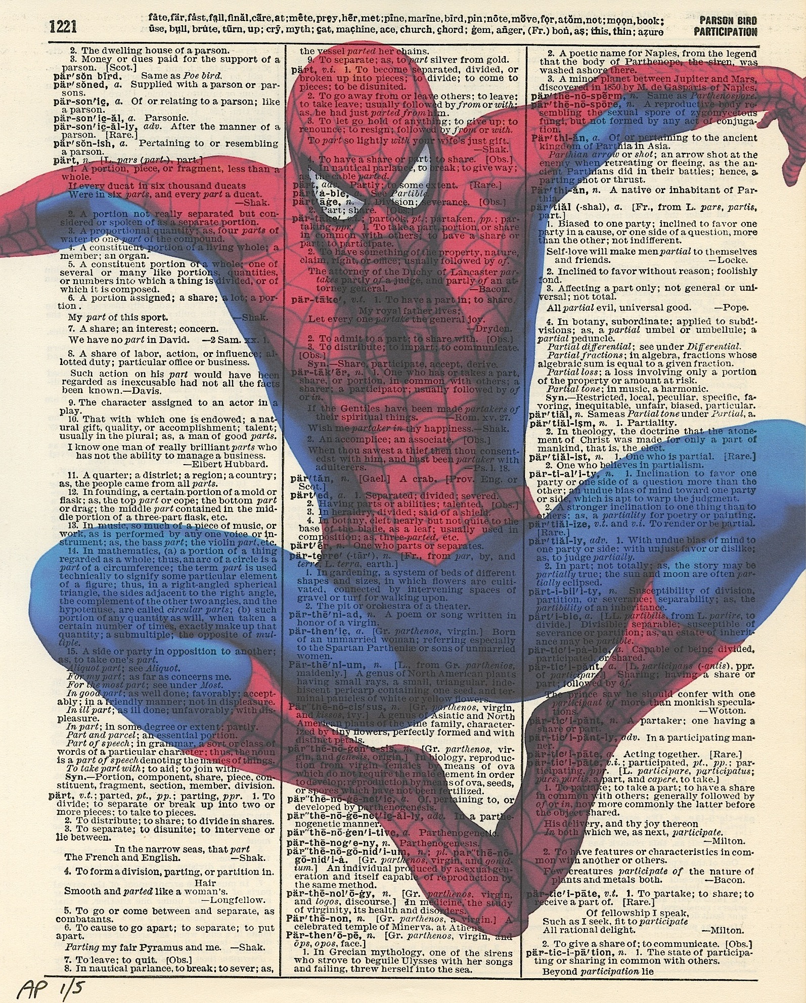 This piece measures approximately 8" x 10" in size. A unique early 1900's antique dictionary page is used as the canvas giving the print a great vintage look and making this piece a genuine one-of-a-kind collectible. The print offered will be the exact image shown, but the page it is printed on will vary.