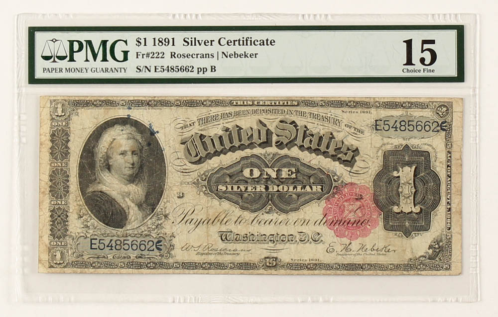 1891 $1 One-Dollar U.S. Silver Certificate Large-Size Bank Note (PMG 15)
