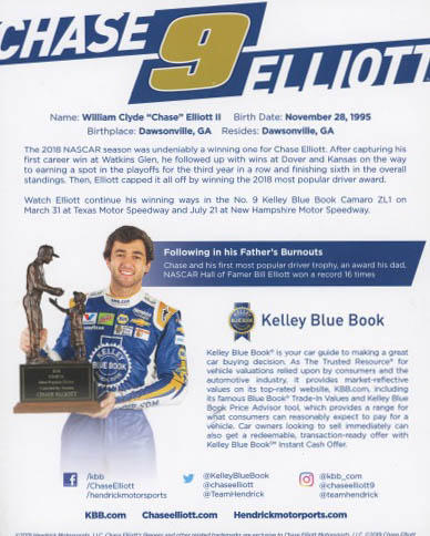 Chase Elliott Signed NASCAR 8x10 Photo Card (JSA COA)