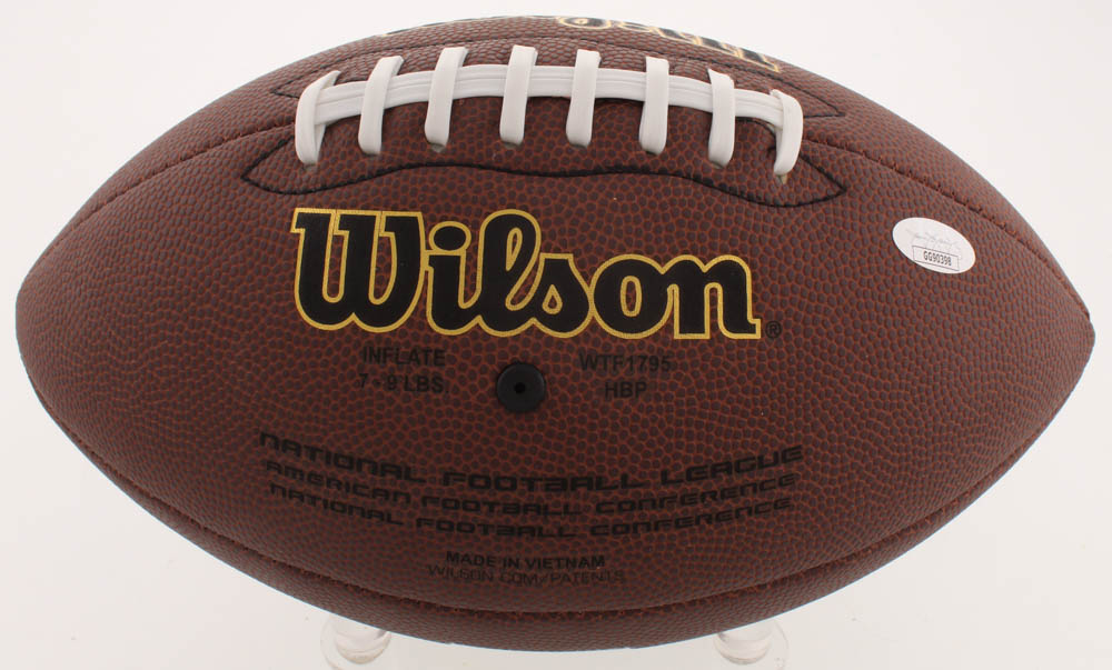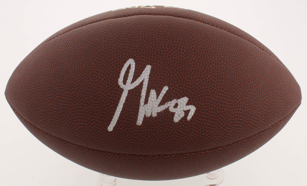 Wilson full-size NFL logo football. Hand-signed in silver paint pen by George Kittle (San Francisco 49ers).