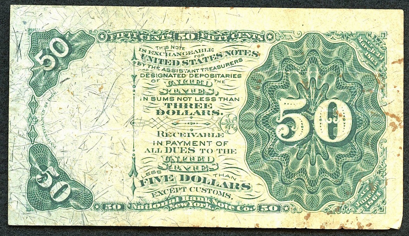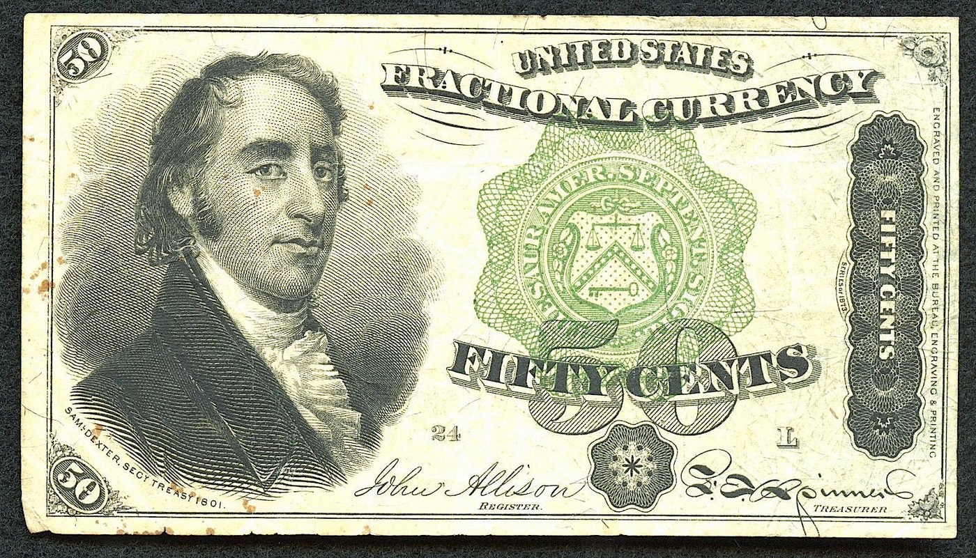 1873 Sam Dexter 50 Fifty Cents U.S. Fractional Currency Bill