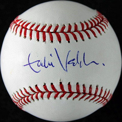 Rawlings Official Major League Baseball has been hand-signed in blue ink pen by Eddie Vedder.