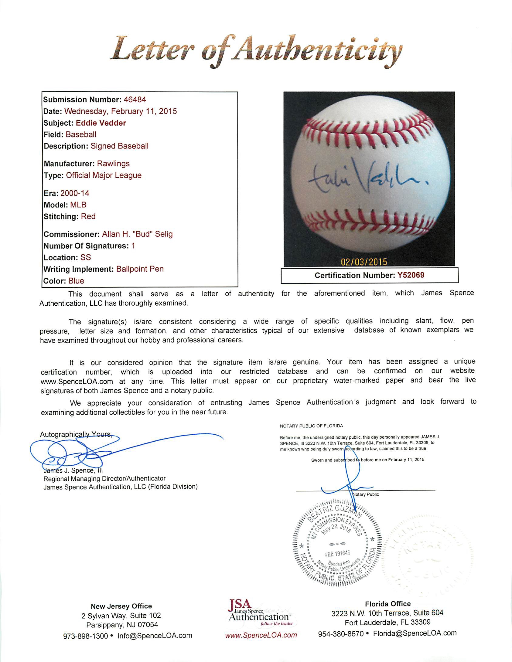 Eddie Vedder Signed OML Baseball (JSA LOA)
