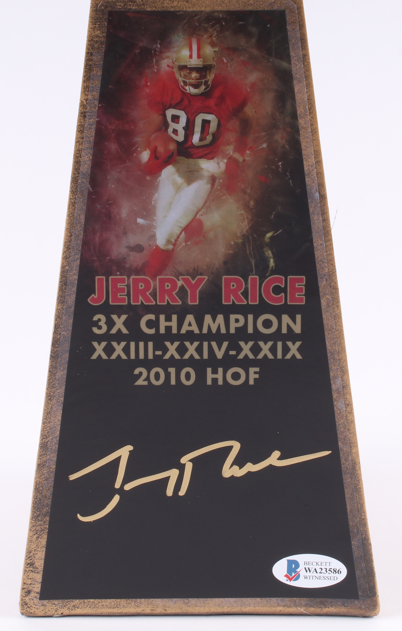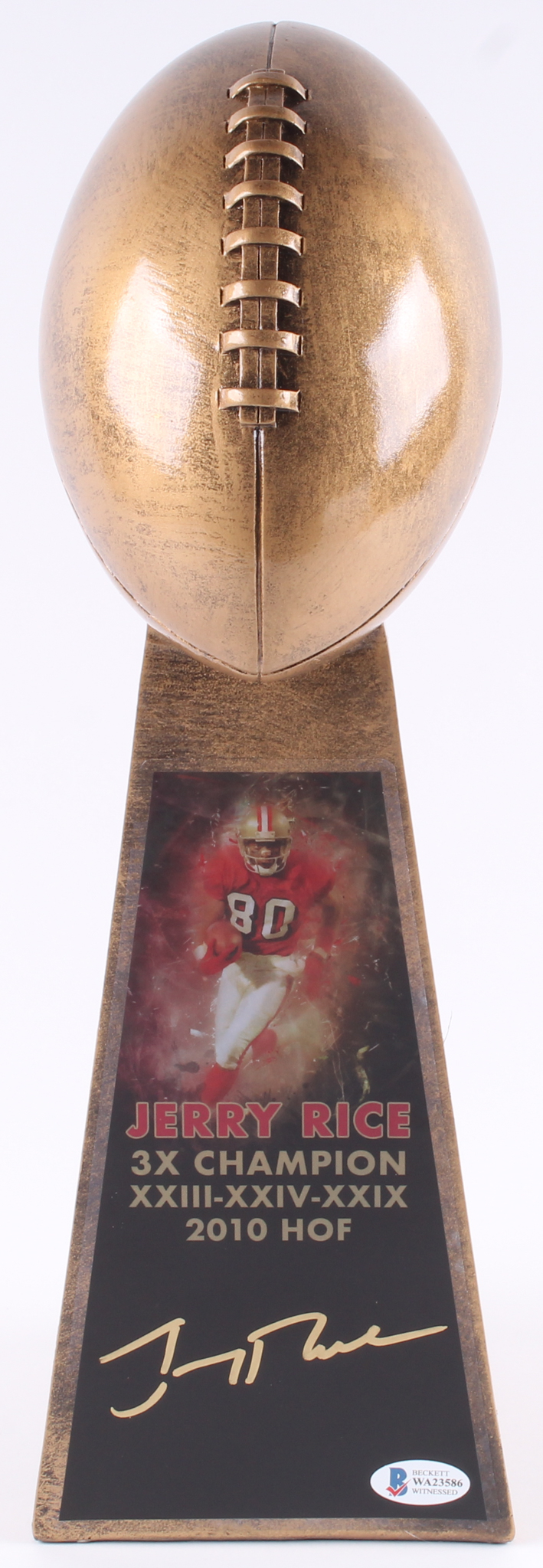 Trophy measures approximately 15" in height. Hand-signed by Jerry Rice (San Francisco 49ers, HOF).
