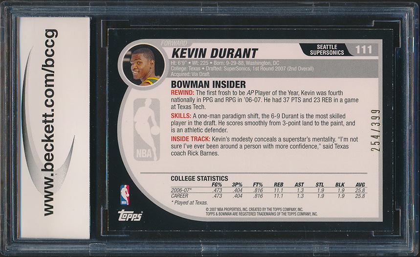 Kevin Durant 2007-08 Bowman Copper #111 (BCCG 10)