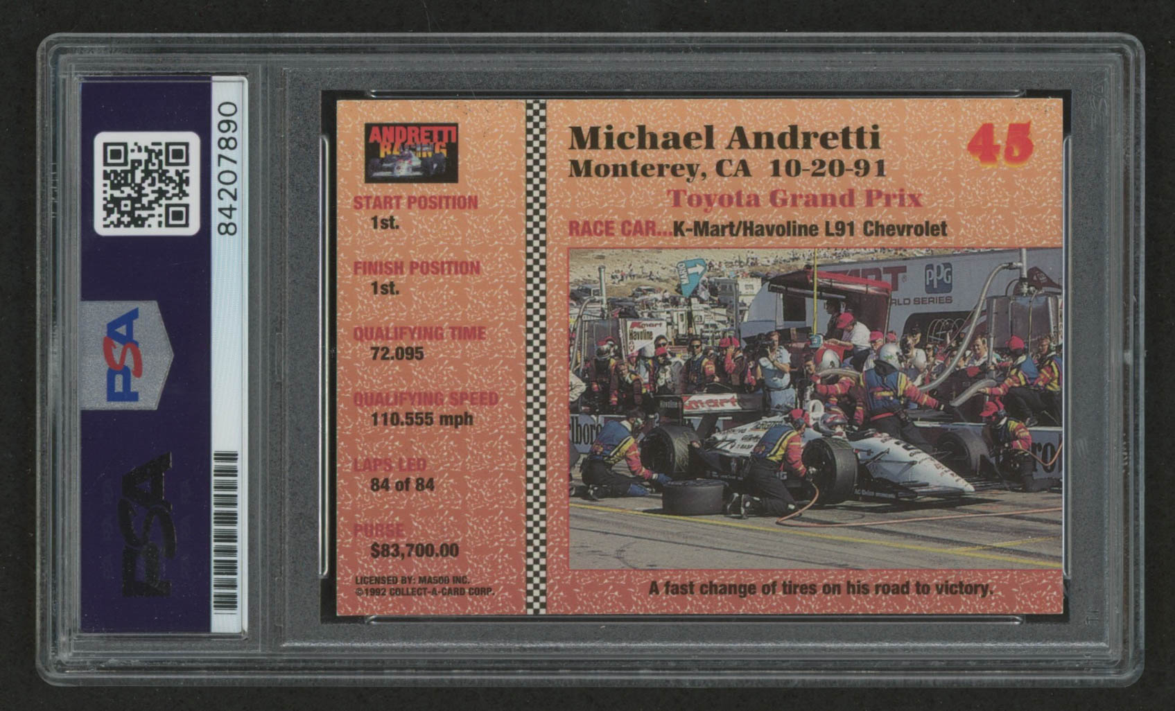 Michael Andretti Signed 1992 Collect-A-Card Andretti Racing #45 Michael Andretti's Car (PSA Encapsulated)