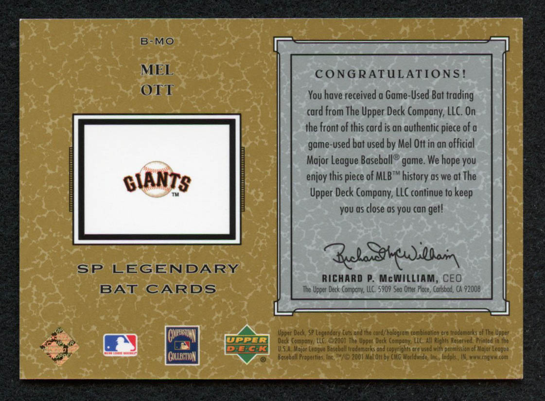 Mel Ott 2001 SP Legendary Cuts Game Bat #BMO
