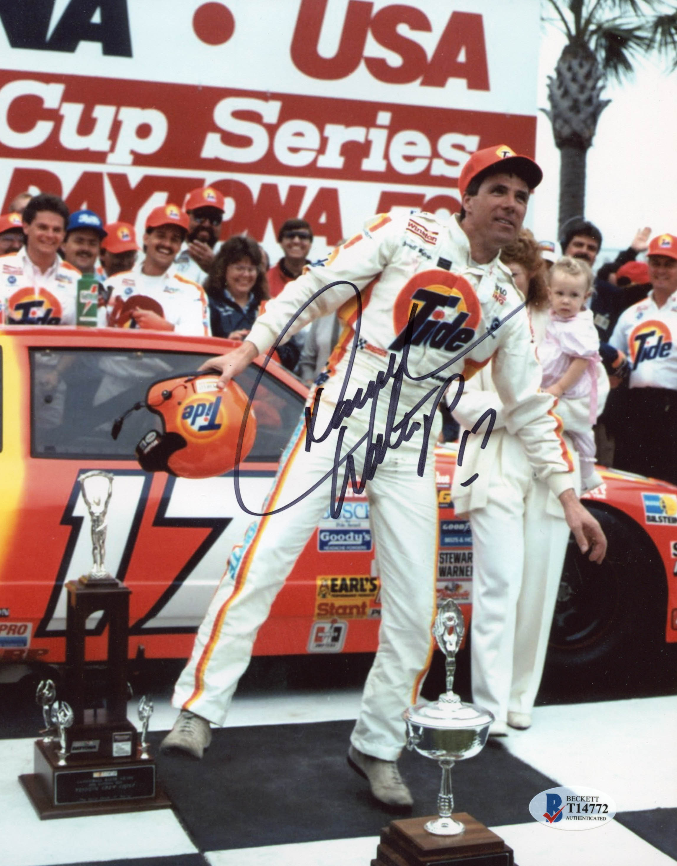 Photo measures 8" x 10" in size and has been hand-signed in black felt tip pen by Darrell Waltrip. (HOF)