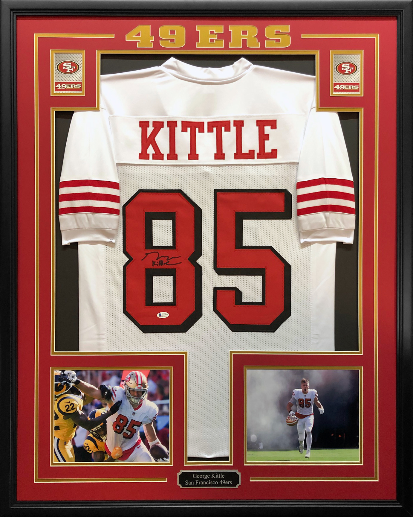 George Kittle Signed 34.5x42.5 Custom Framed Jersey (Beckett COA)