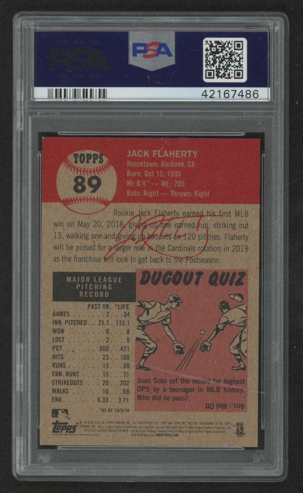 Jack Flaherty 2018 Topps Living #89 RC (PSA 8)