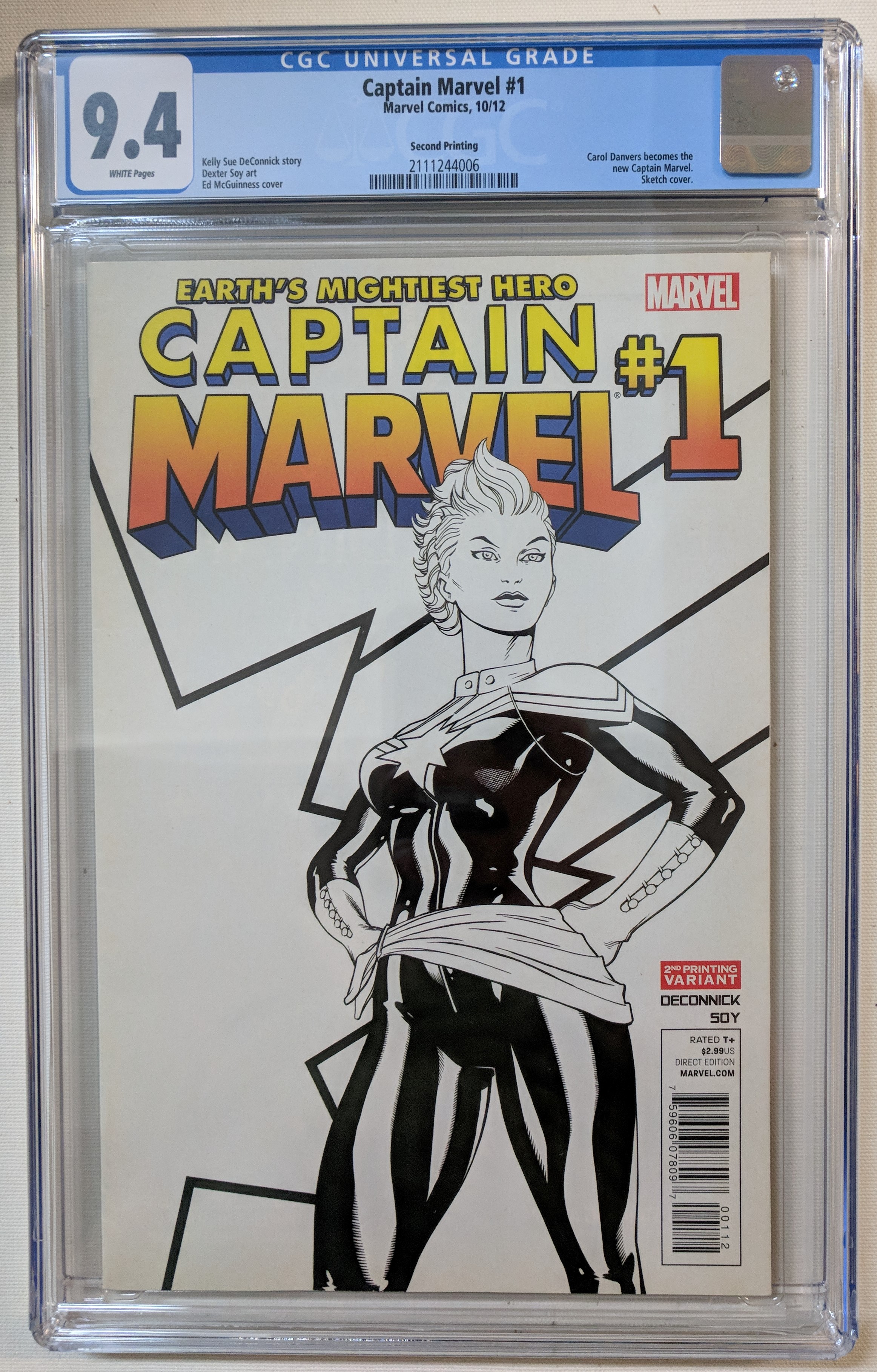 2012 "Captain Marvel" Issue #1 Second Print Variant Marvel comic book. The comic book has been given a grade of (CGC) 9.4.