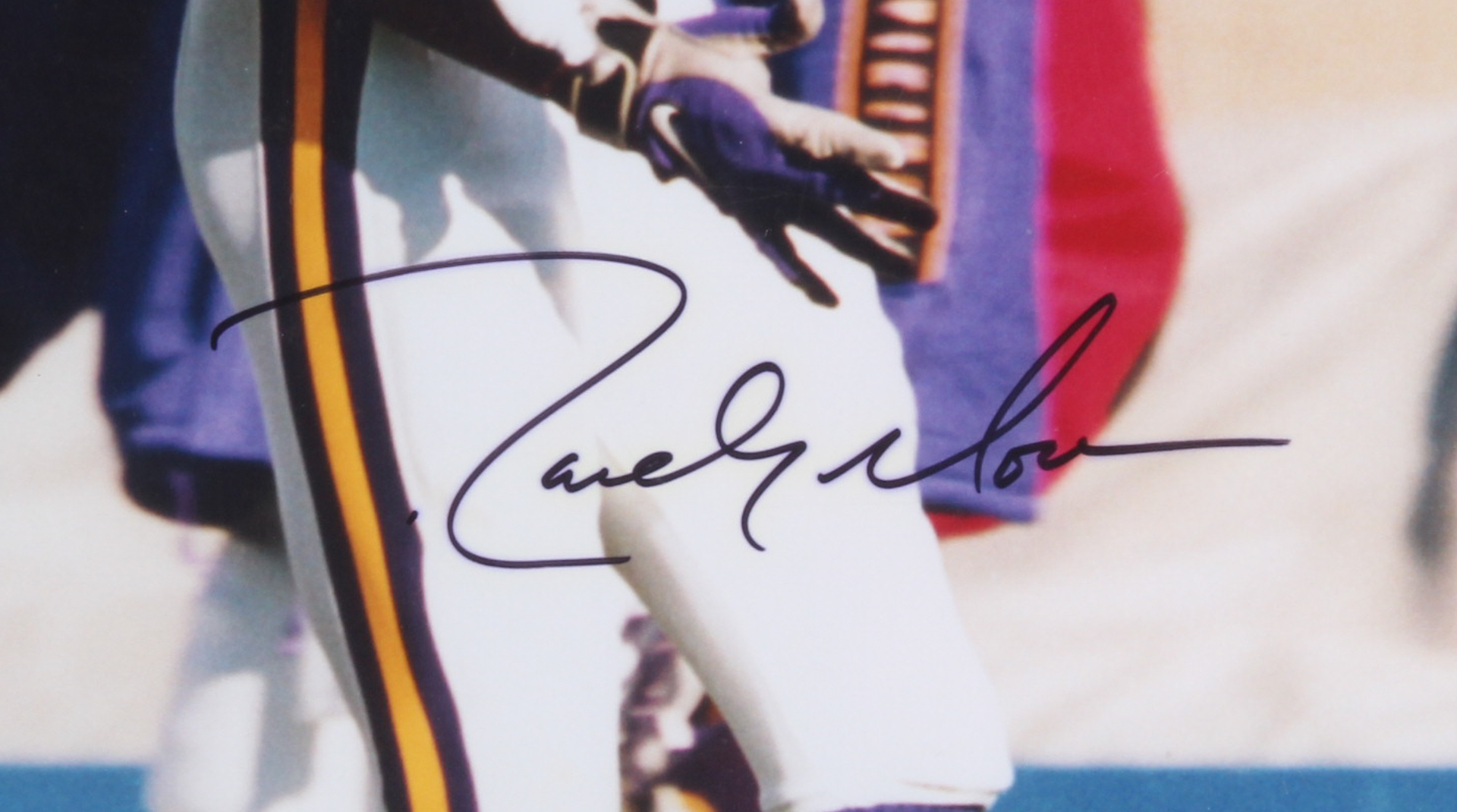 Photo measures 20" x 24" in size and has been hand-signed in black felt-tip pen by Randy Moss (Minnesota Vikings, HOF).