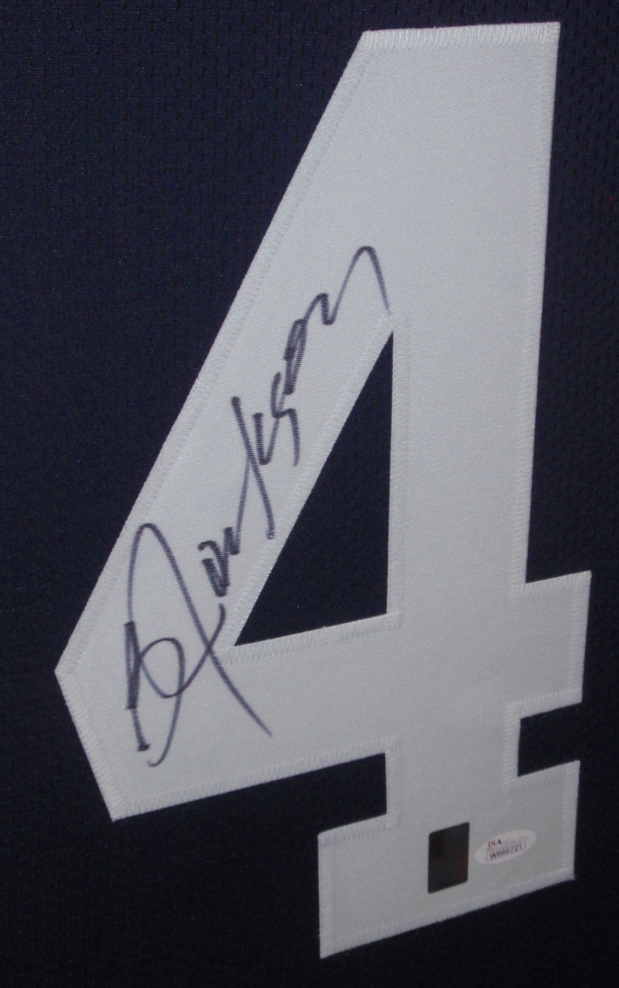 Custom frame measures approximately 35" x 43" in size and features a jersey which has been hand-signed in black felt-tip pen by Bo Jackson. The autograph includes an official Bo Jackson player hologram from GT Sports Marketing and James Spence Authentication (JSA) hologram with matching COA for authenticity purposes. The signing of this item was witnessed by JSA.