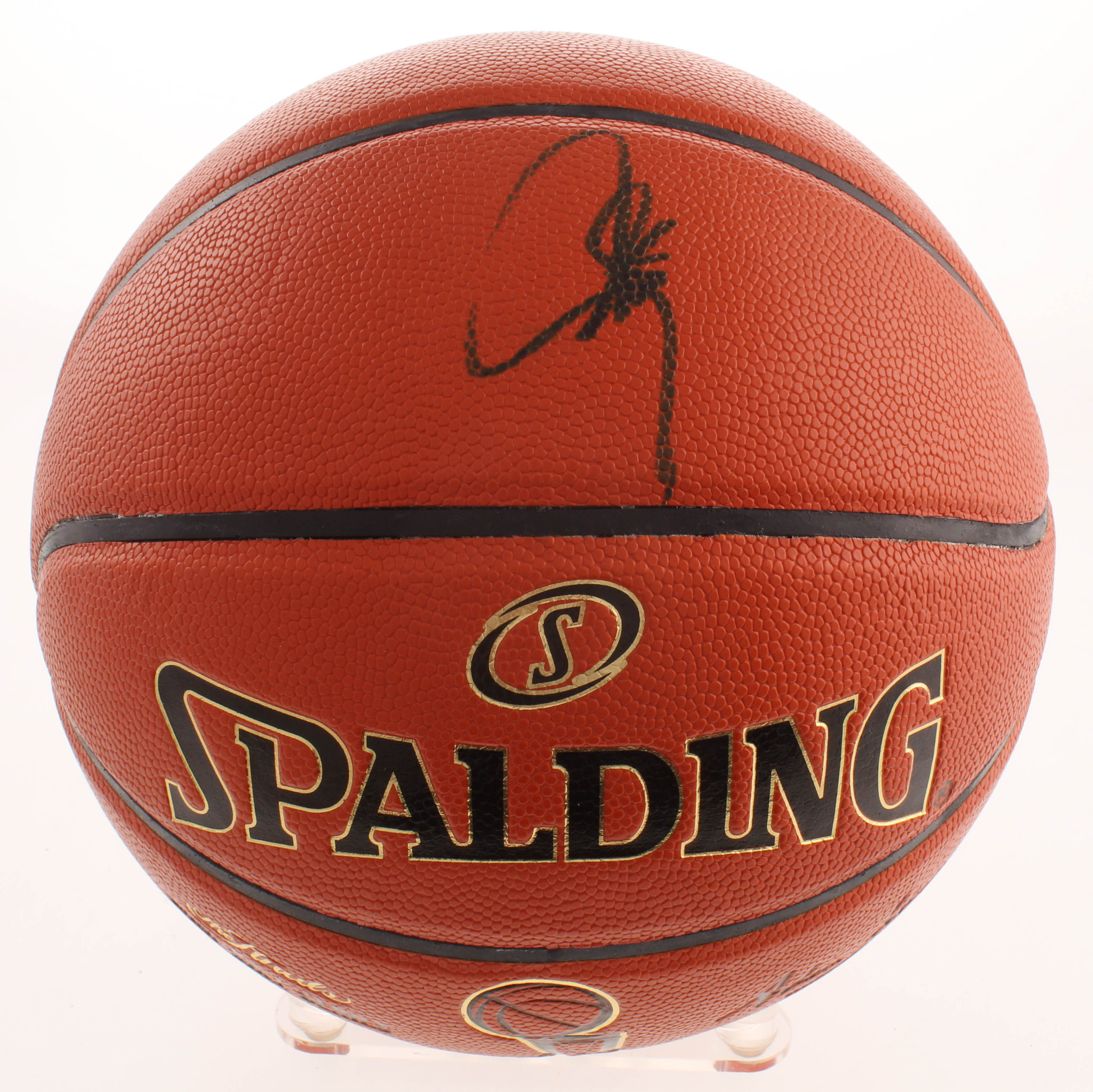 Spalding NBA Game "The Finals" Ball Series basketball. Hand-signed in black felt-tip pen by Stephen Curry (Golden State Warriors). Please note, the basketball is limited edition.