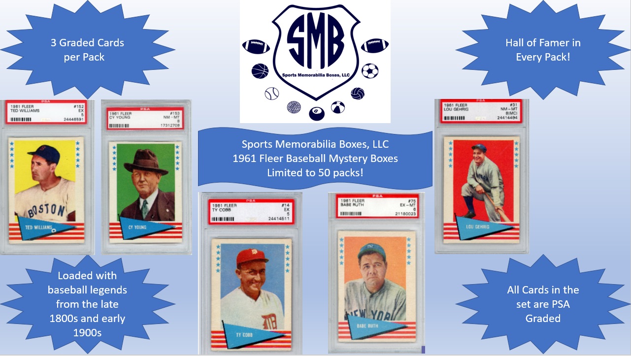 Sports Memorabilia Boxes: 1961 Fleer Baseball Graded Card Mystery Box – 3 Graded Cards per Box