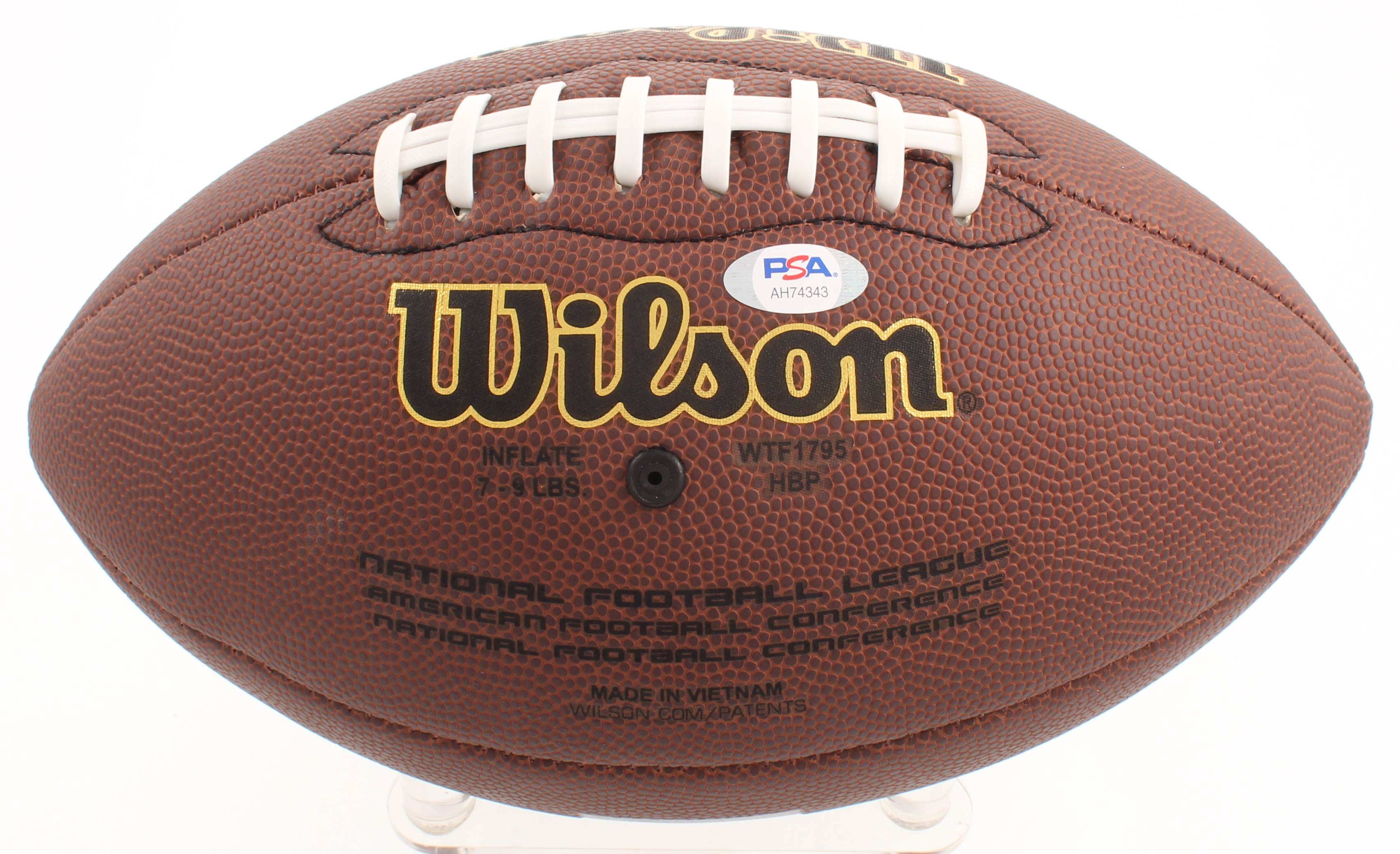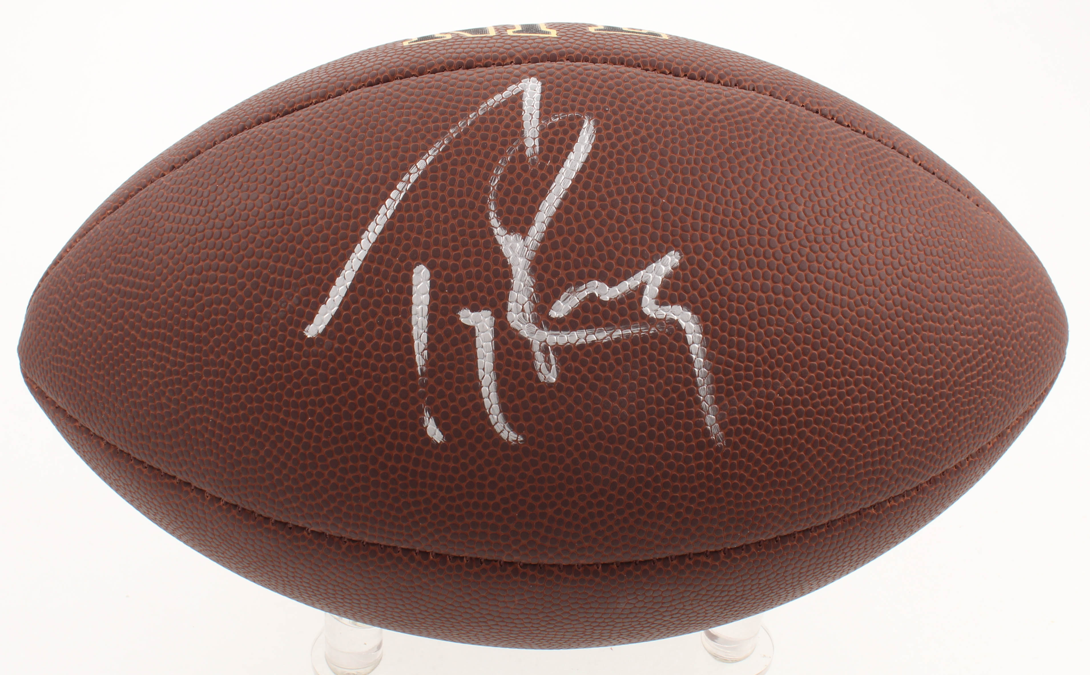 Wilson NFL Football. Hand-signed in silver paint pen by Tony Romo (Dallas Cowboys).
