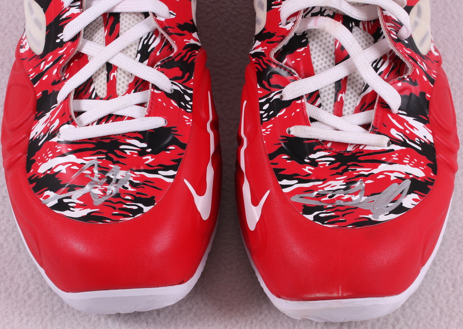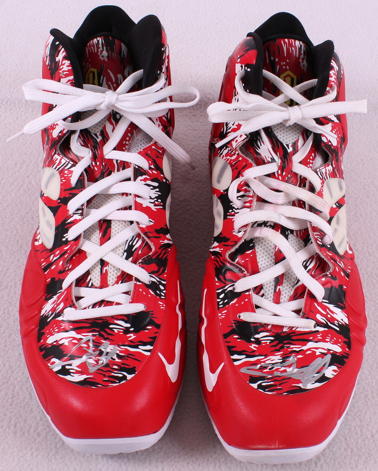 Pair of (2) Game-Used Nike Max Air Basketball Shoes. Both shoes hand signed in silver paint pen by Chris Bosh (Raptors, Heat). Each autograph includes an official PSA/DNA hologram and matching COA for authenticity purposes.