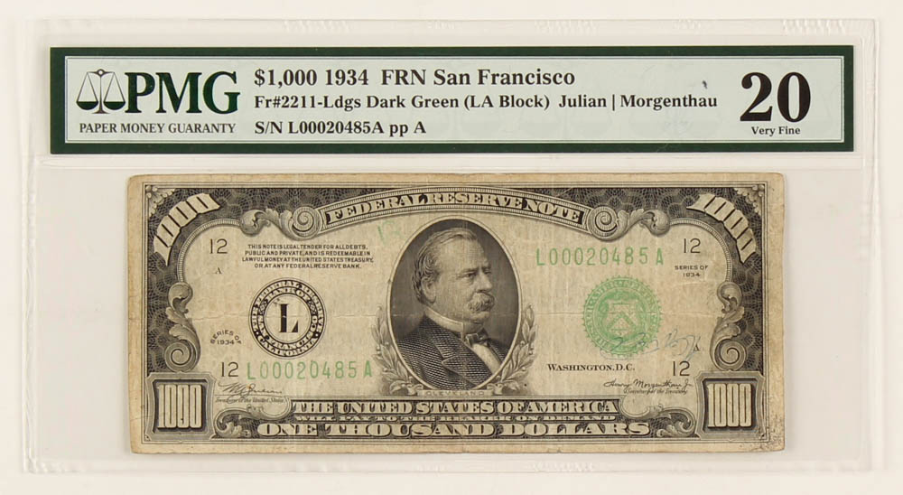 1934 $1,000 One-Thousand Dollar Federal Reserve Note (PMG 20)