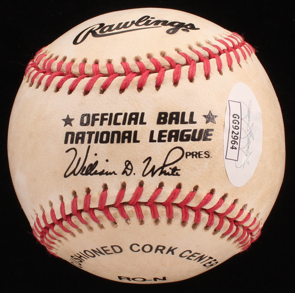 Rawlings Official National League baseball. Hand-signed in black ink pen by Steve Carlton (Philadelphia Phillies, HOF). Please see photos for details regarding condition of the baseball.