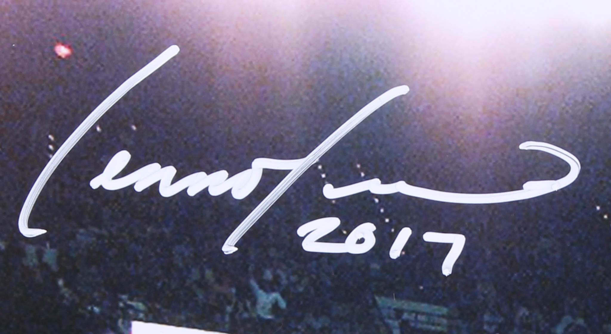 Photo measures 16" x 20" in size and has been hand signed in silver paint pen by Lennox Lewis Smith.