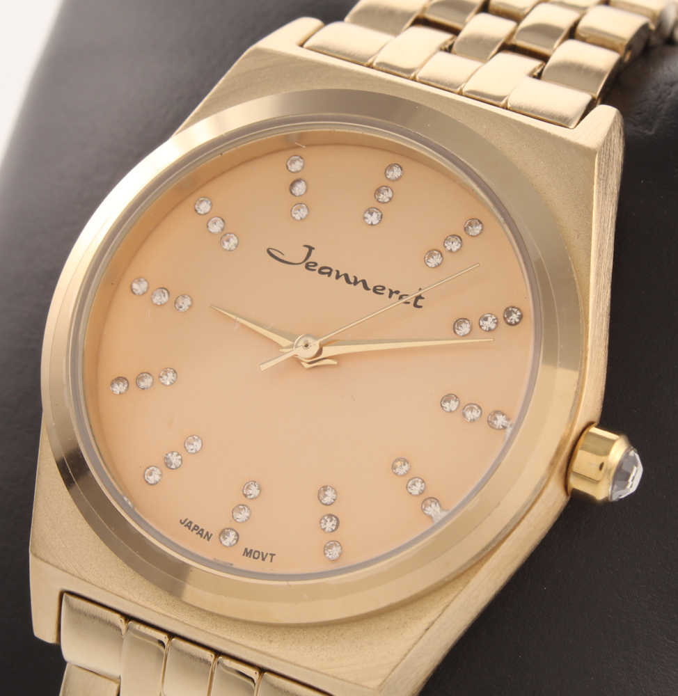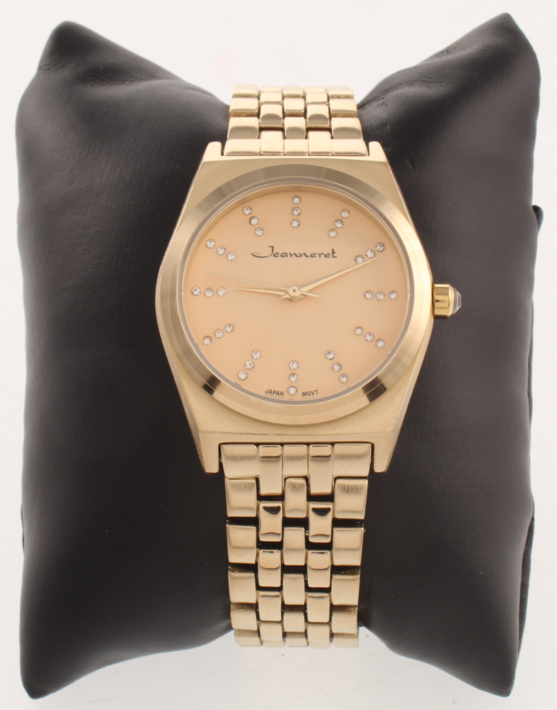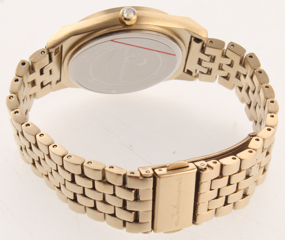 The Jeanneret Elbe Ladies Watch features a gold bracelet, gold case, and gold dial. Please see photos for details.