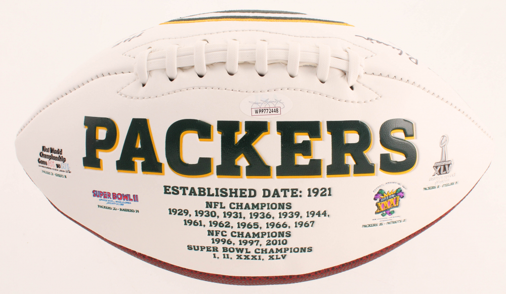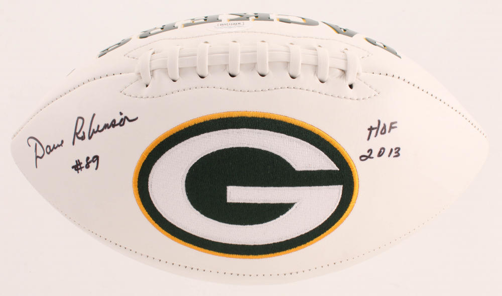 Green Bay Packers logo football. Hand-signed in black felt-tip pen by Dave Robinson (HOF).