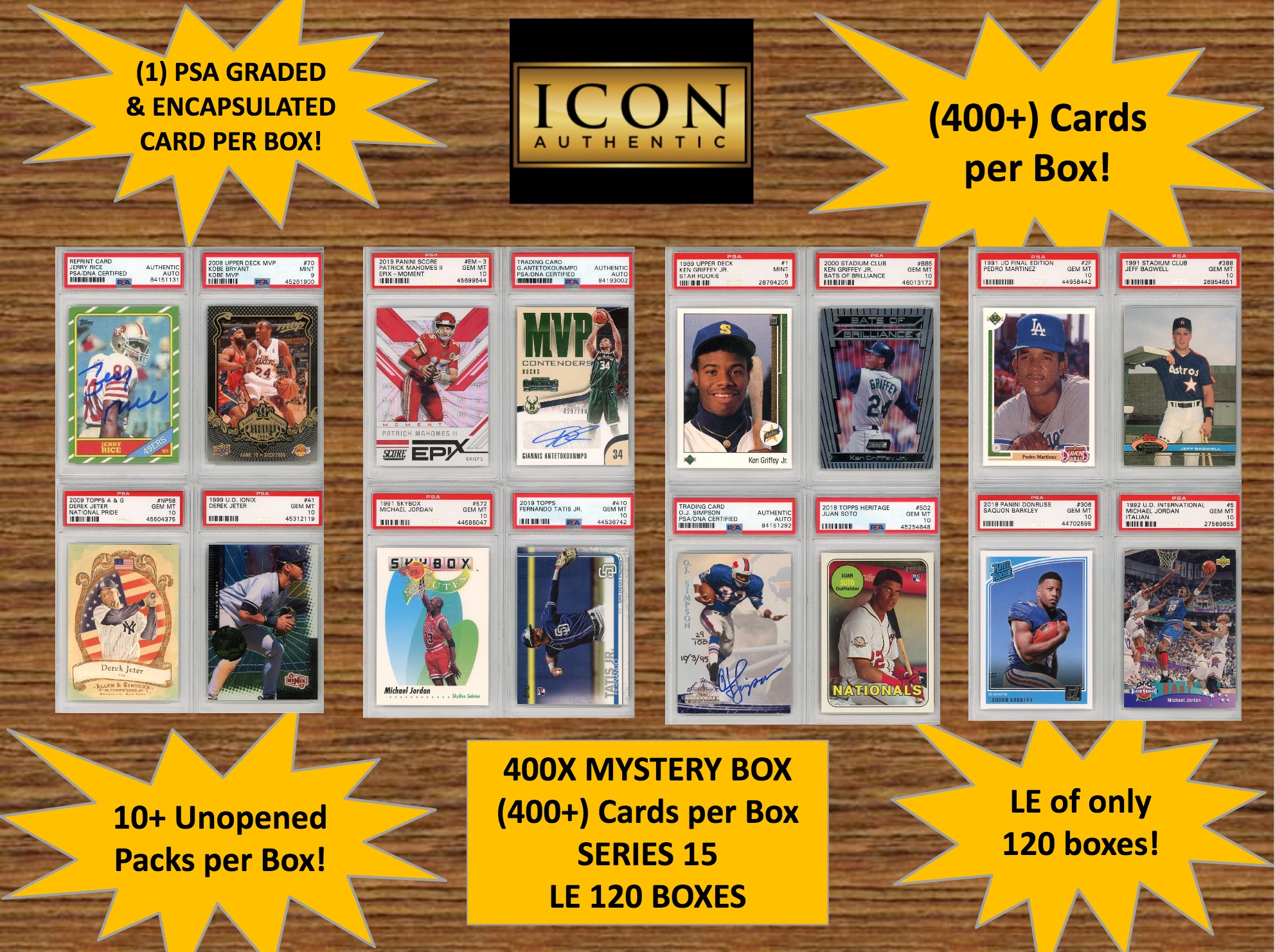 Icon Authentic 400X Mystery Box Series 15 - gives you an excellent chance to a get a key card or autograph card with one of the Industry Lowest Limited Edition Runs of only 120 Boxes per Series.