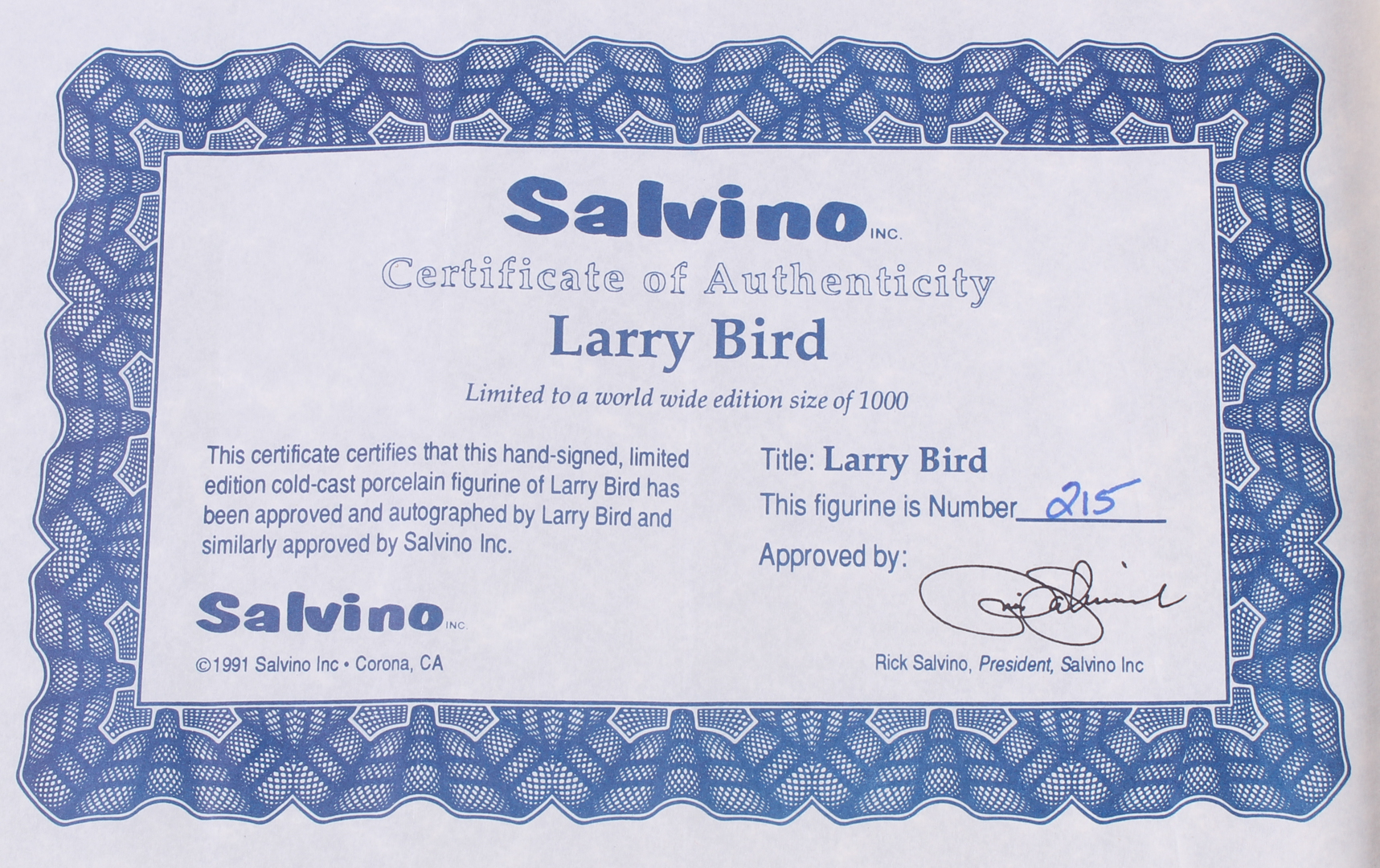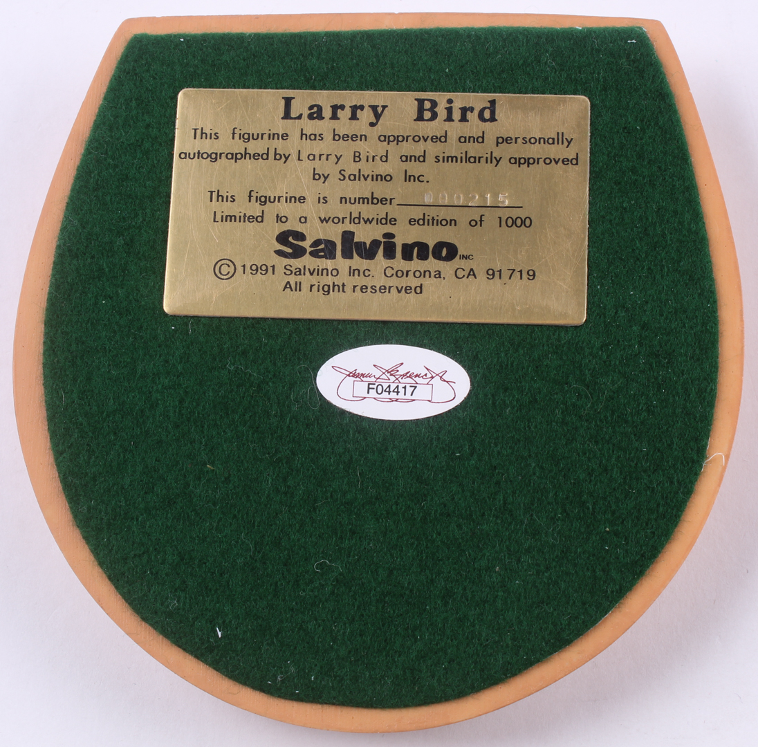 Salvino Collection Boston Celtics action figure measures approximately 12.5" in height and has been hand-signed in black felt-tip pen by Larry Bird (HOF). Action figure is limited edition and has been numbered #000215/1000. Please note, platform base detaches from figure and comes with original packaging. See images for details regarding the condition of the action figure and packaging.