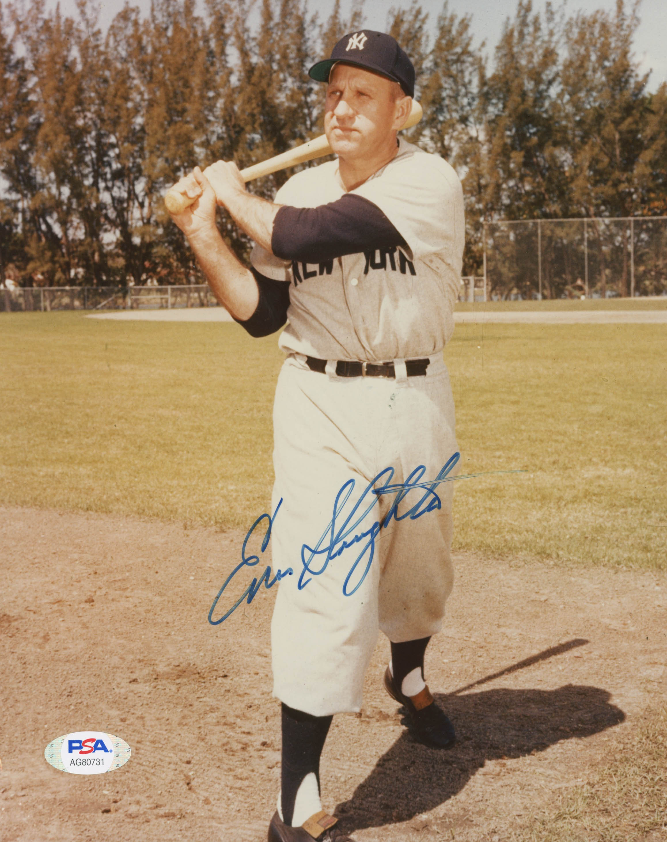 Enos Slaughter Signed Yankees 8x10 Photo (PSA COA)