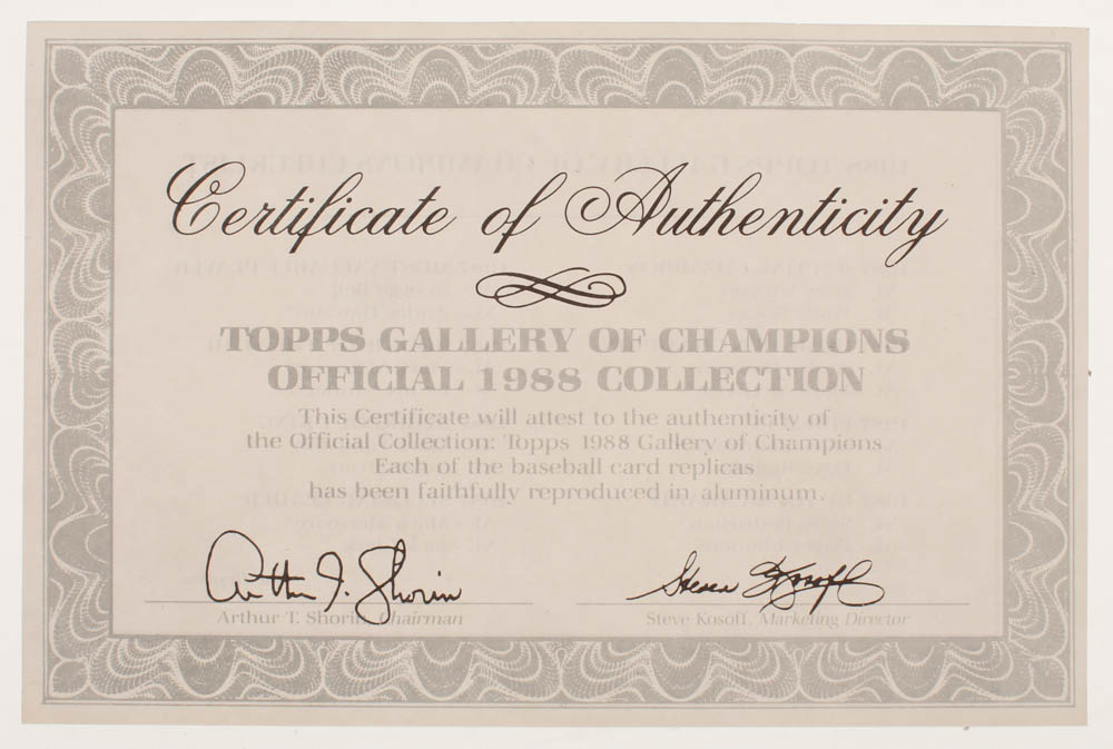1988 Topps Gallery of Champions Complete Set of (12) Aluminum Replica Cards with Mark McGwire & Tony Gwynn