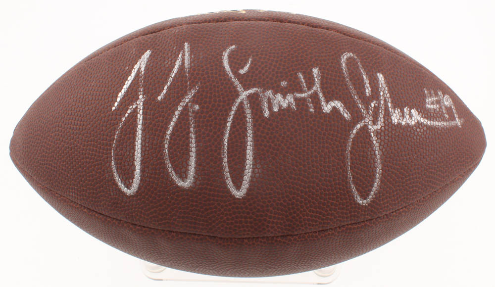 Wilson NFL football. Hand-signed in silver paint pen by JuJu Smith-Schuster (Pittsburgh Steelers). Please see images for details regarding the condition of the football.