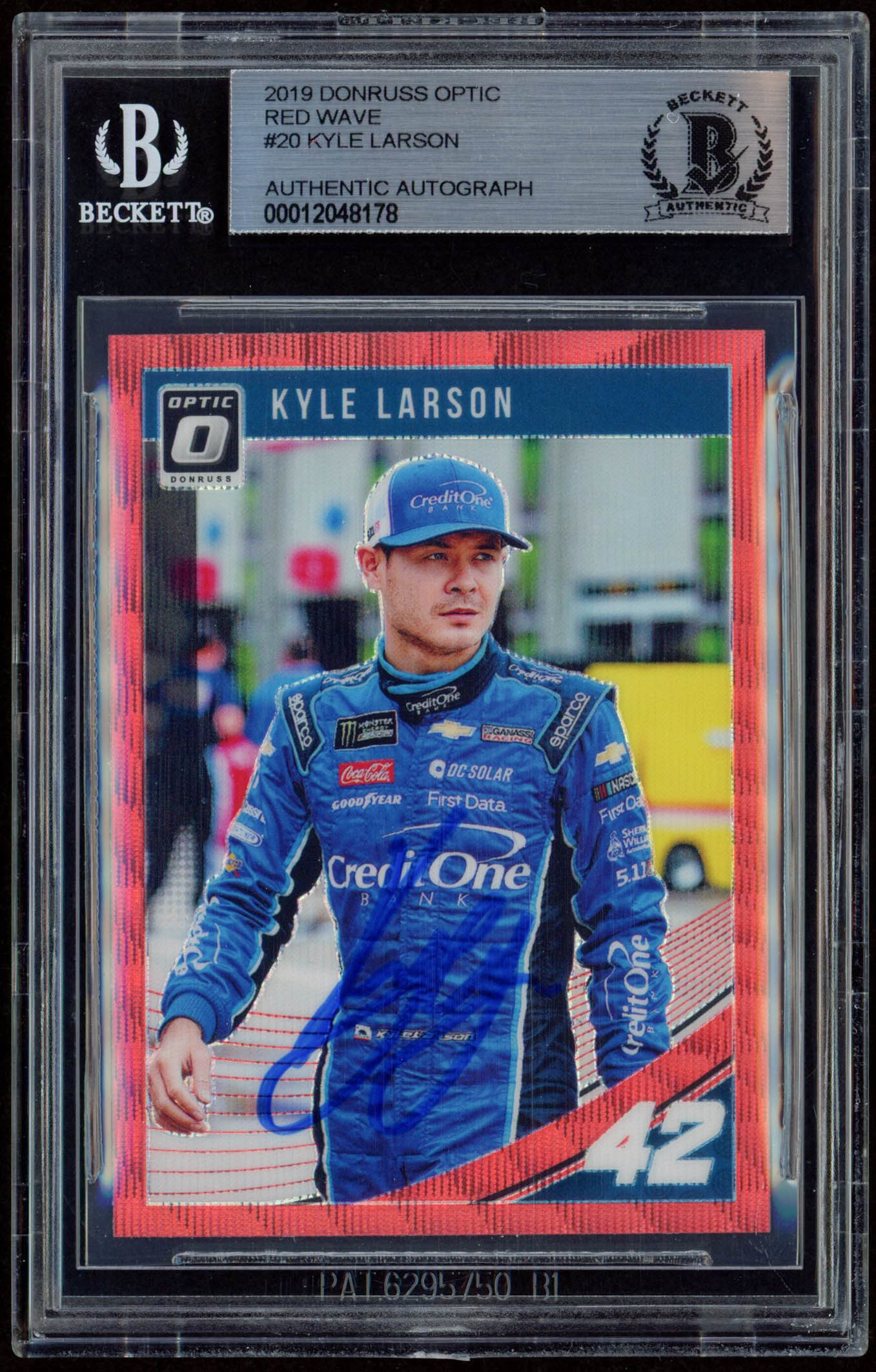 Kyle Larson Signed 2019 Donruss Optic Red Wave #20 (BGS Encapsulated)