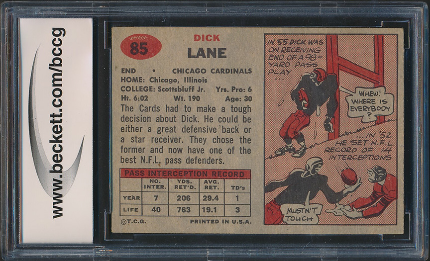 Dick Lane 1957 Topps #85 RC (BCCG 9)