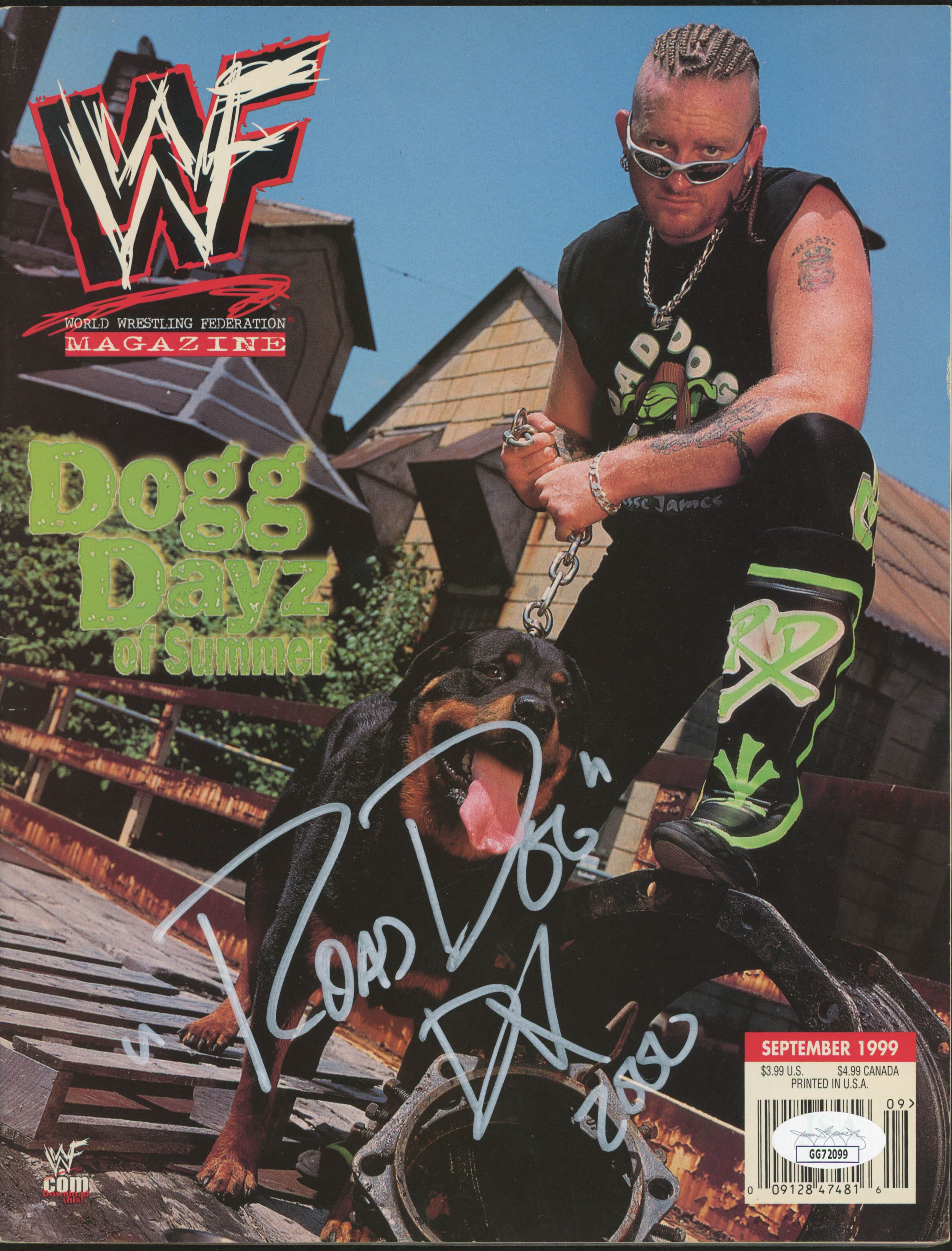 September 1999 issue of WWF magazine has been hand-signed in white paint pen by Road Dogg (HOF).
