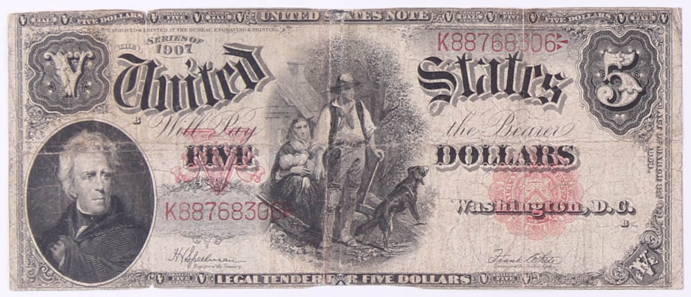 1907 $5 Five Dollar 1907 Series $5 Woodchopper United States Large-Size Bank Notes