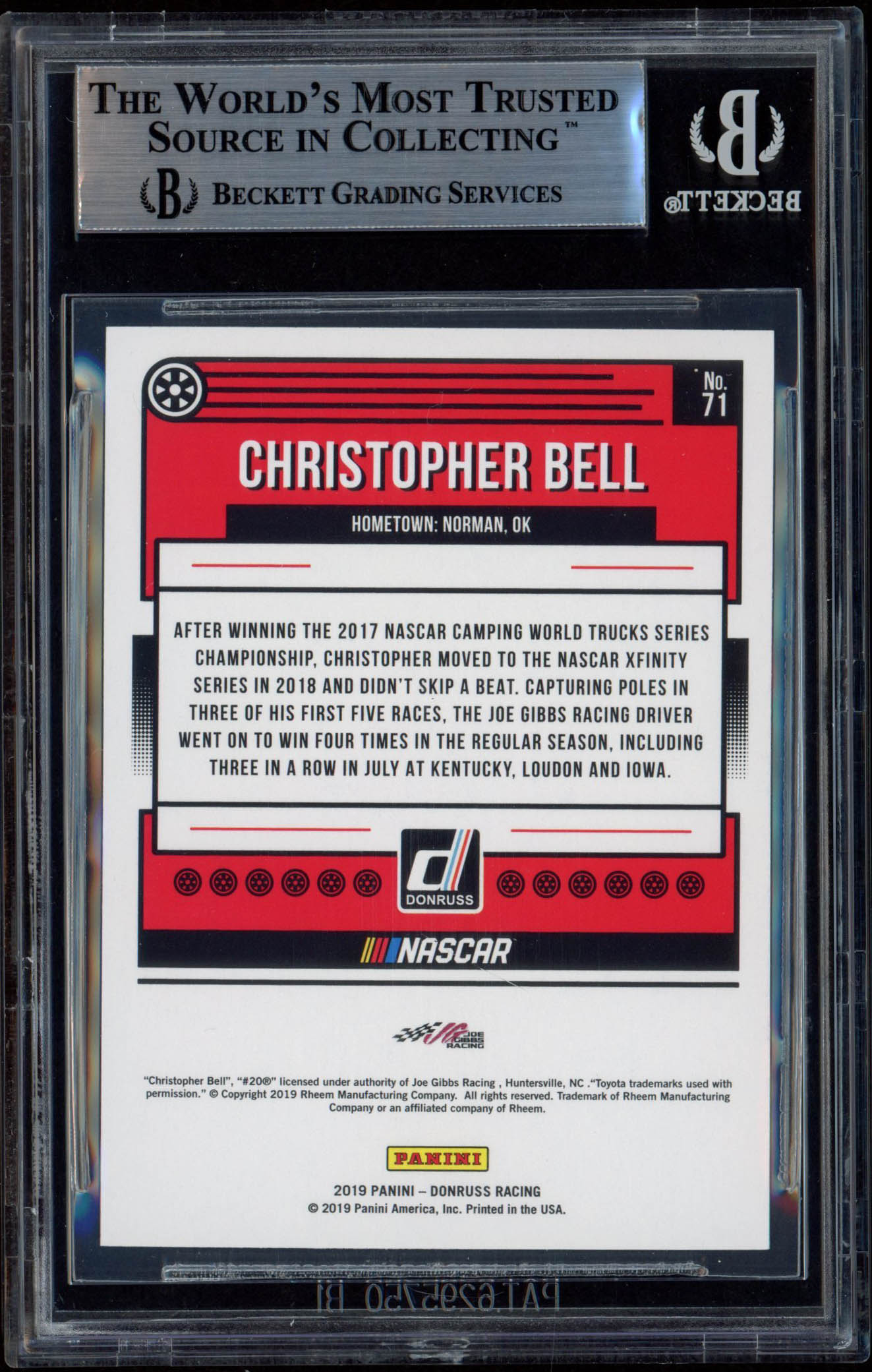 Christopher Bell Signed 2019 Donruss Silver #71 (BGS Encapsulated)