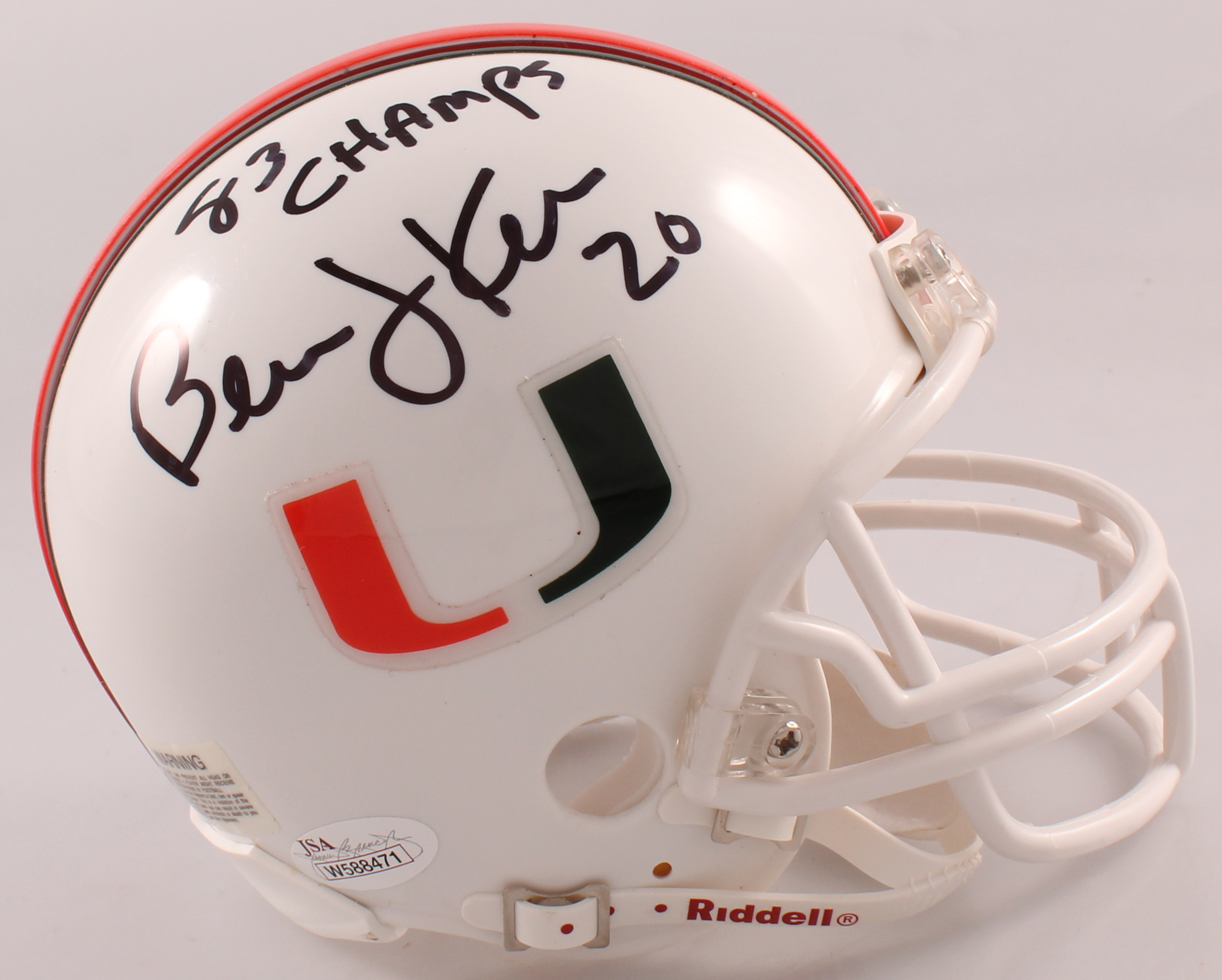Riddell Miami Hurricanes mini helmet has been hand-signed in black felt-tip pen by Bernie Kosar.