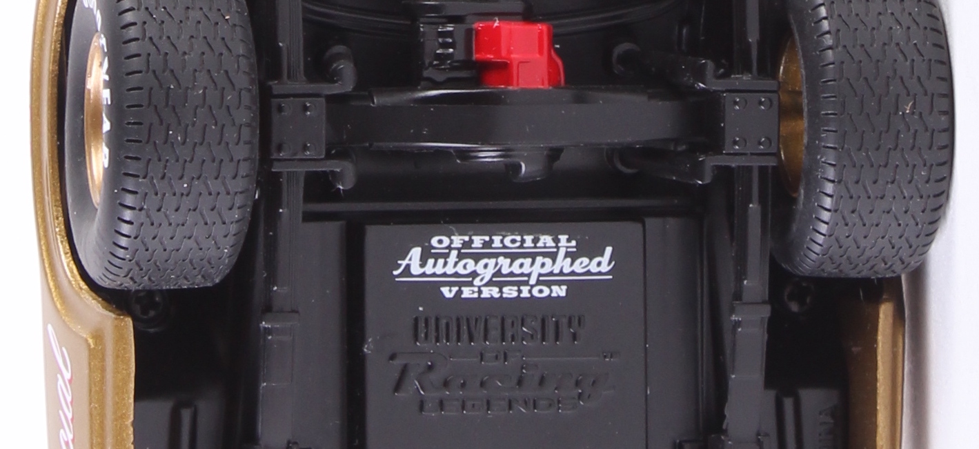 Premium University of Racing Legends die-cast car hand-signed in yellow paint pen on the windshield by Darrell Waltrip. The car is a premium diecast car with incredible detail.