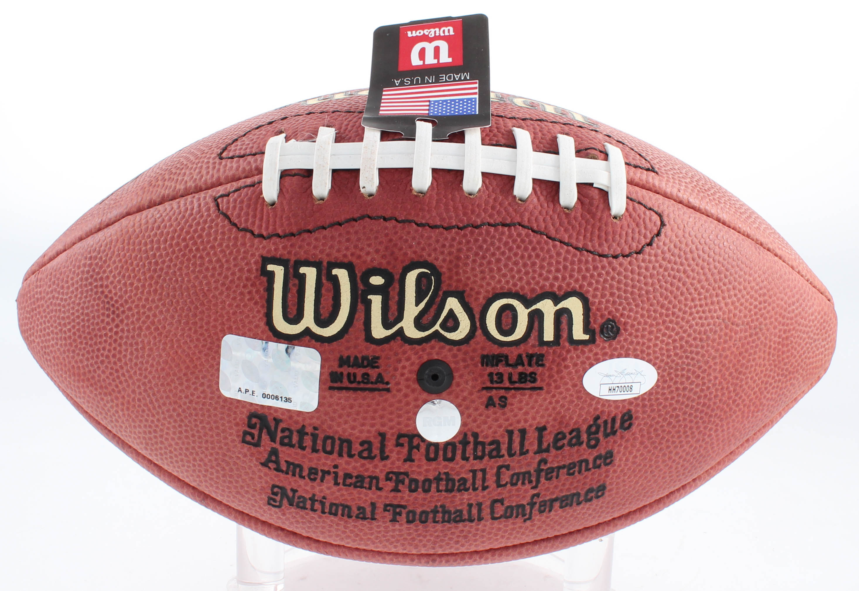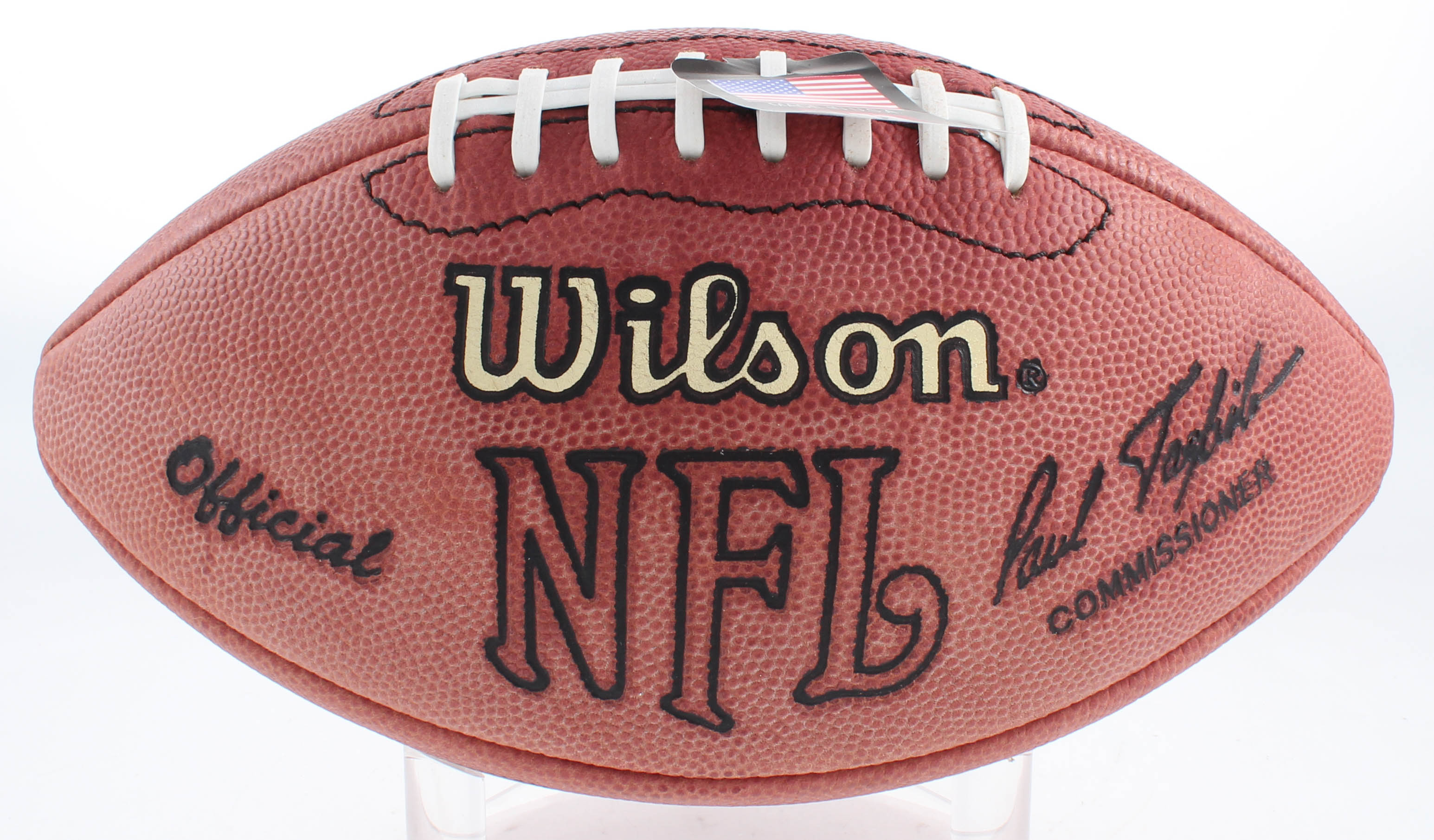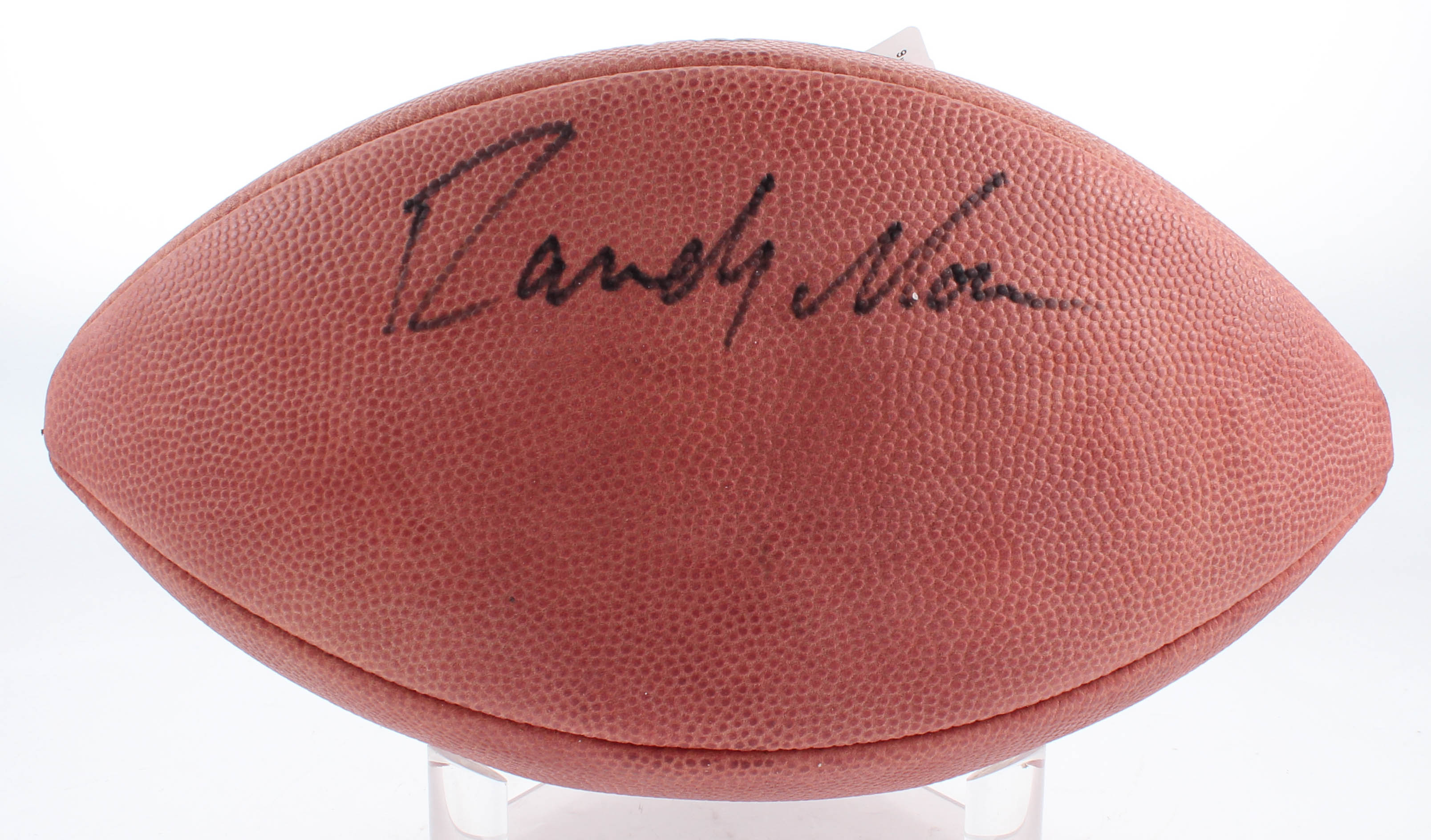 Wilson Official NFL football. Hand-signed in black felt-tip pen by Randy Moss (Minnesota Vikings). Please note, the ball does not hold air.
