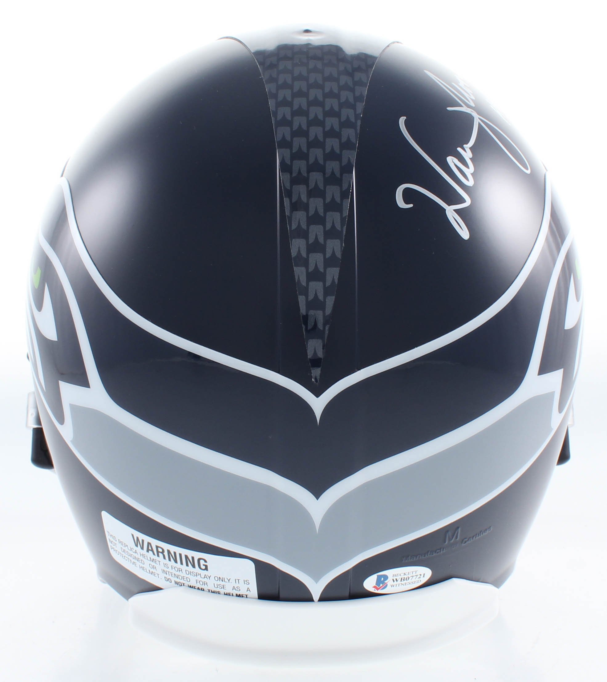 Riddell Seattle Seahawks full-size replica helmet. Hand-signed and inscribed in white paint pen by Warren Moon (HOF).