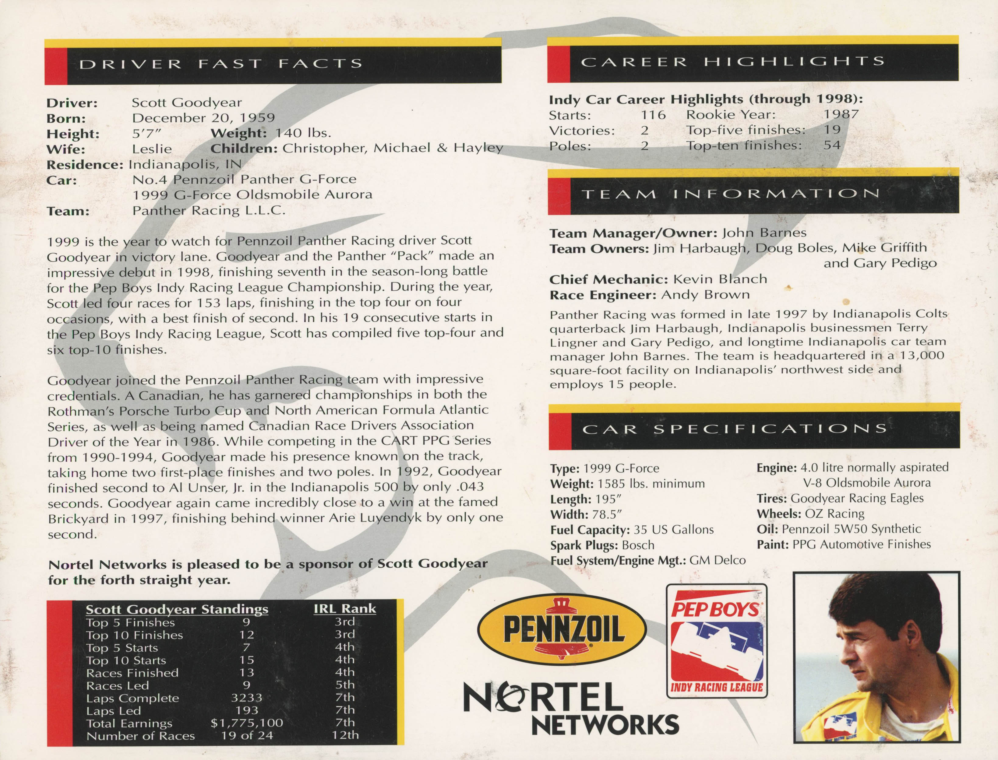 Scott Goodyear Signed 8.5x11 Photo (JSA COA)