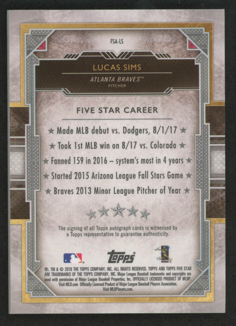Lucas Sims 2018 Topps Five Star Autographs Purple #FSALS