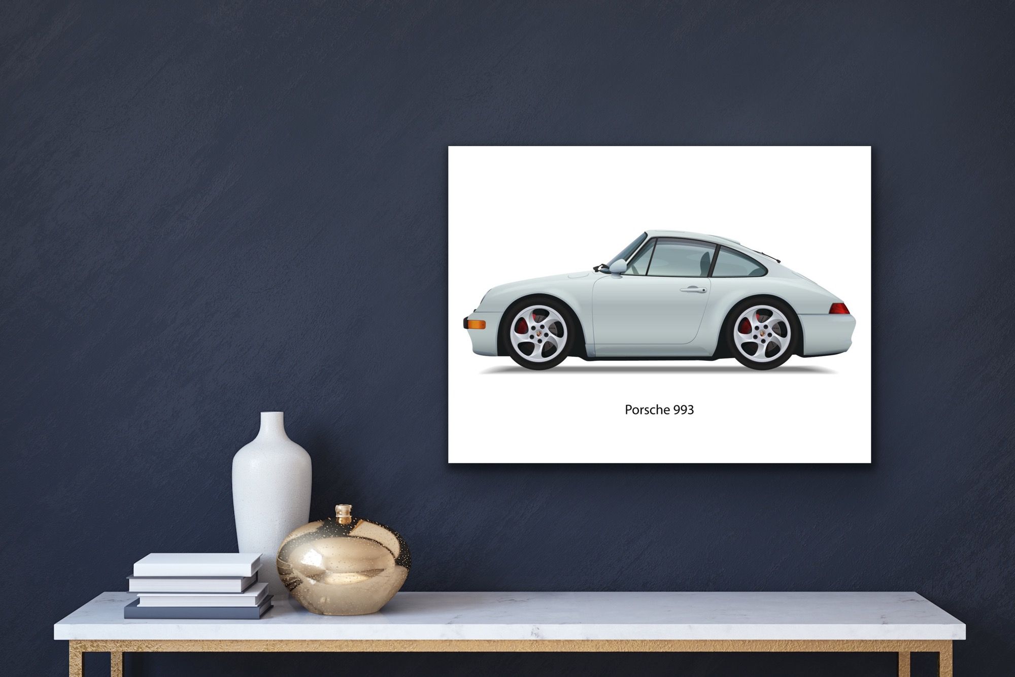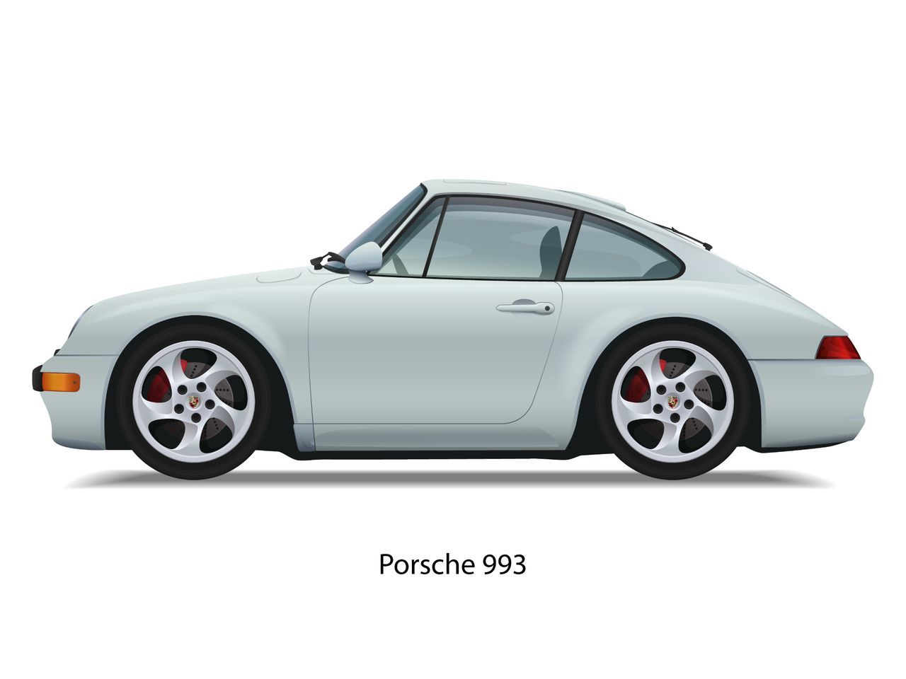 Polar Silver Metallic Porsche 993 Coupe 4S Carrera Non-Turbo 1994-1998 12x16 Caricature Wall Art