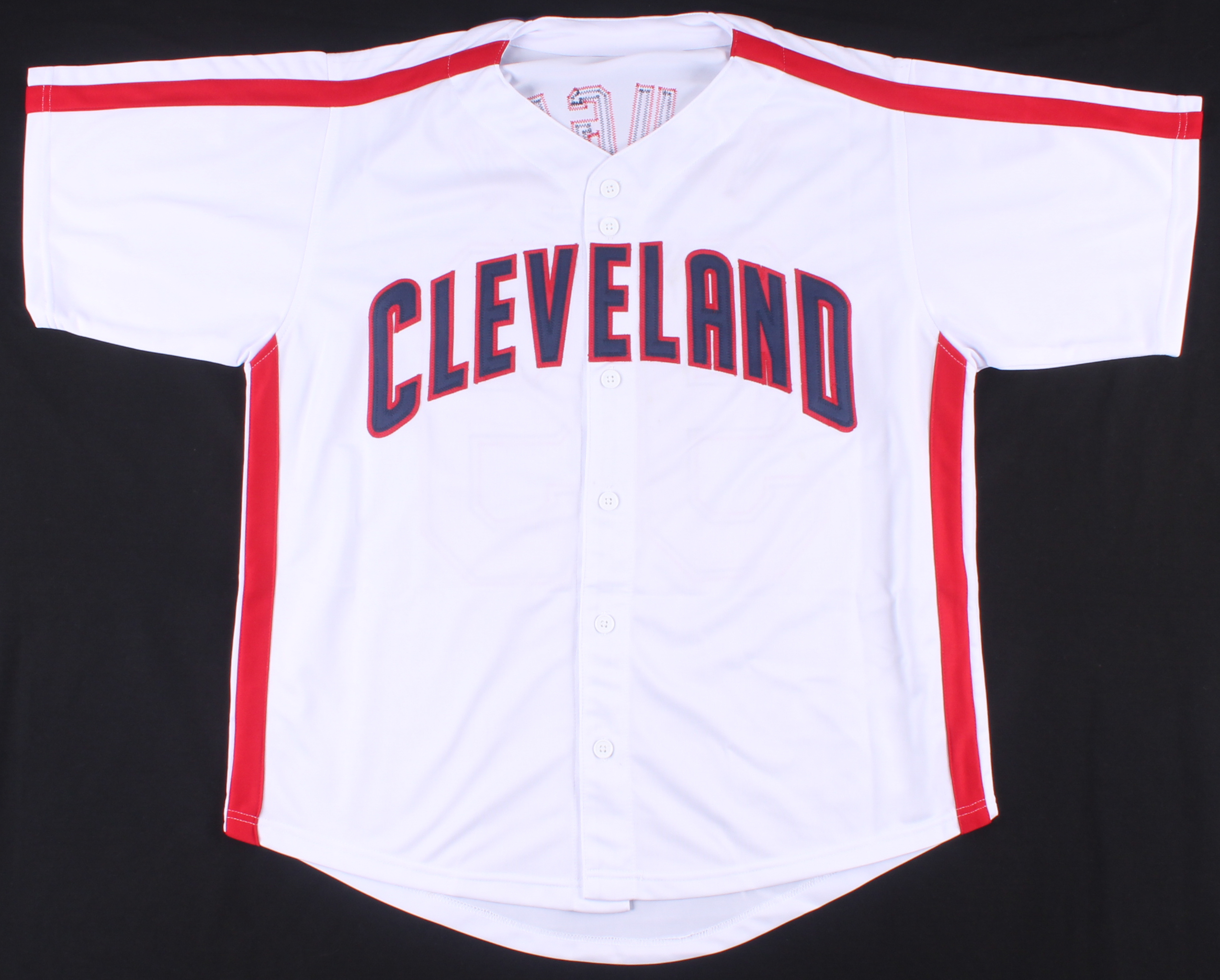 Custom on-field style jersey. Everything is sewn on, size XL. Hand-signed in silver paint pen by Charlie Sheen (Ricky Vaughn).