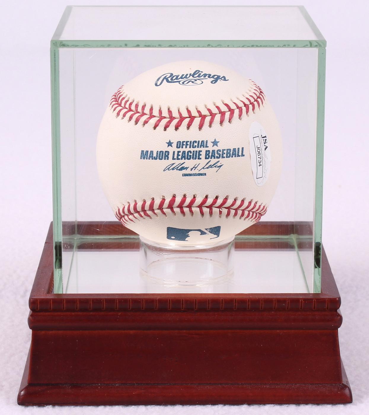 Rawlings Official Major League Baseball. Hand-signed in blue ink pen by Miguel Cabrera (Tigers). The auction also includes a Steiner display case with a wood base and glass cube. The autograph includes an official James Spence Authentication (JSA) hologram and matching COA for authenticity purposes.